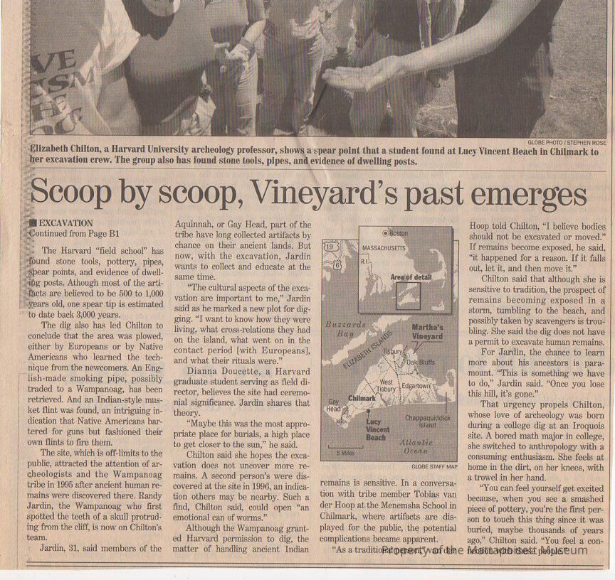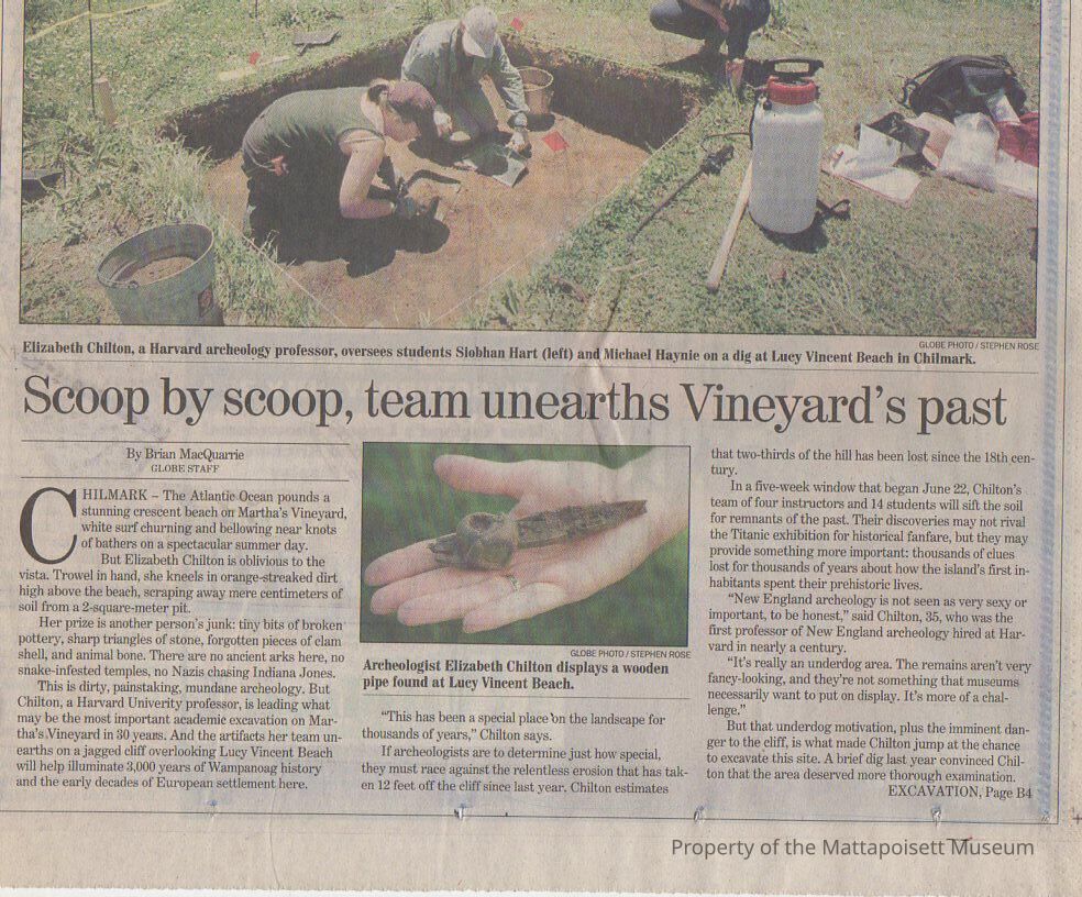 "Scoop by Scoop, team unearths Vineyard's past" two-piece article on archaeologists unearthing American Indian artifacts on Martha's Vineyard.Collection