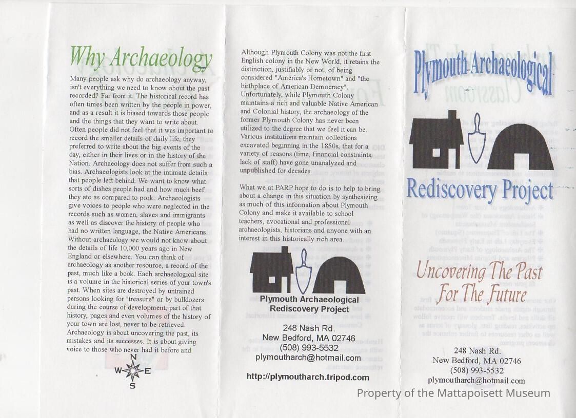 Plymouth Archaeological Rediscovery Project: Uncovering the Past for the Future pamphlet.Collection