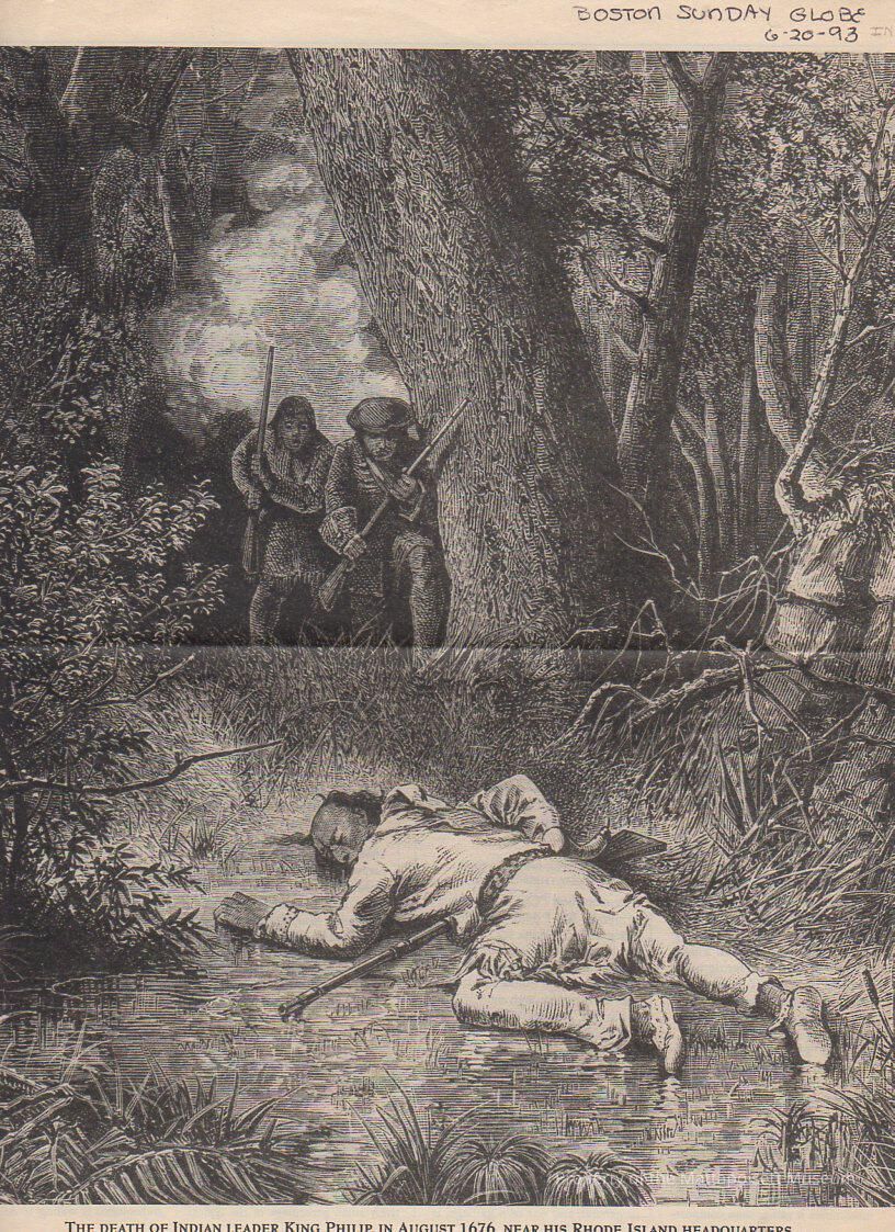 Boston Sunday Globe drawing "The Death of Indian Leader King Philip in August 1676 Near His Rhode Island Headquarters"Collection