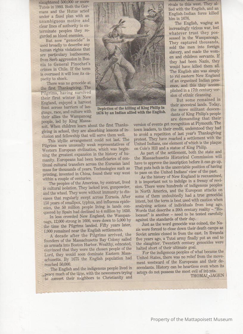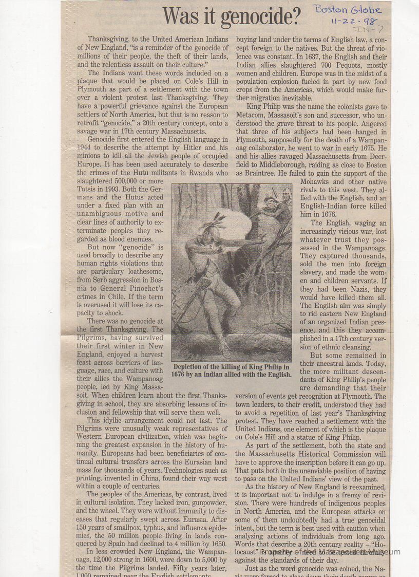 "Was it Genocide?" article about King Philip's WarCollection