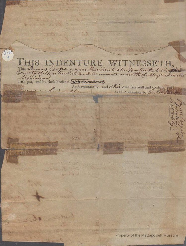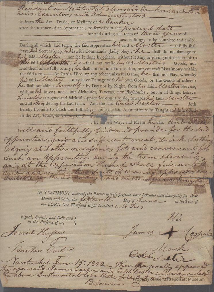 Indenture agreement between James Cooper and Caleb Dexter to apprentice to learn "the Art, Trade and Mystery of a Cauker" for three years.Collection