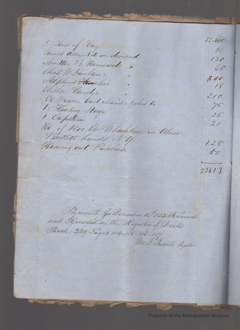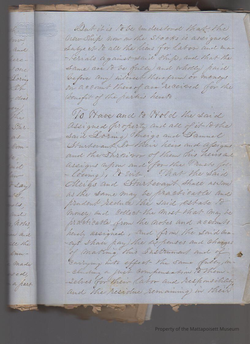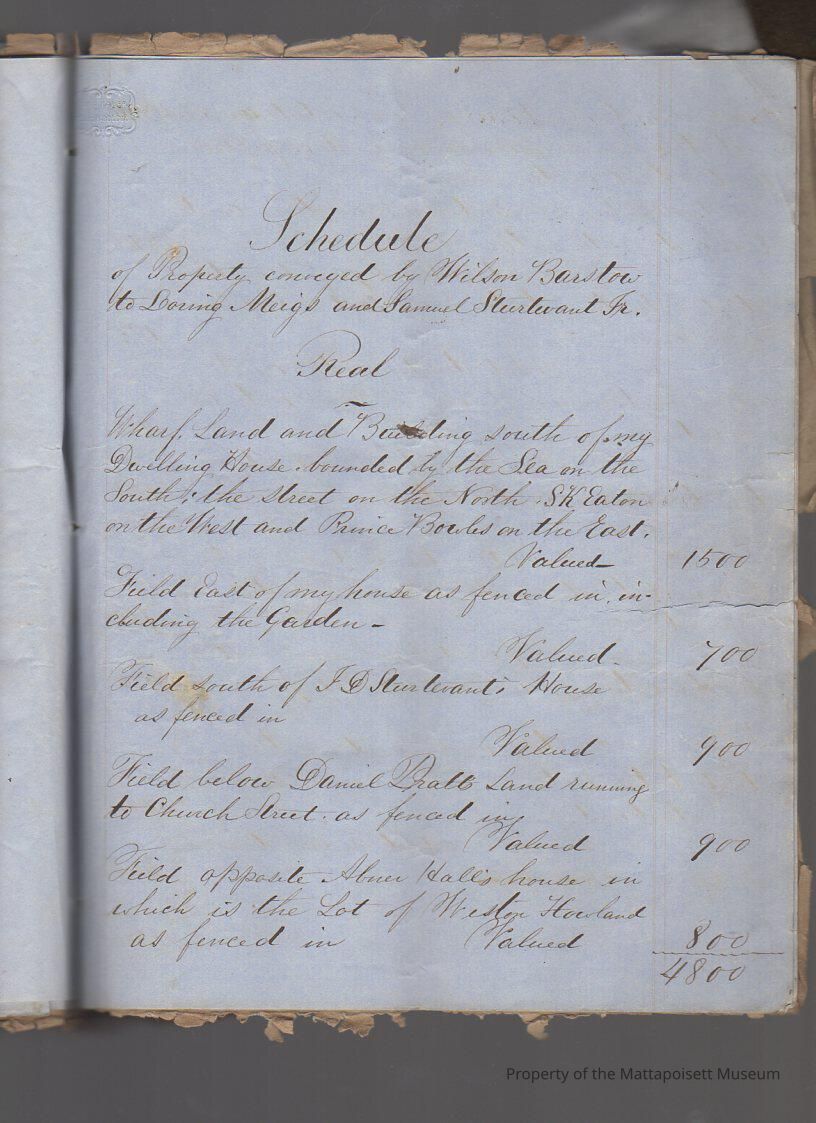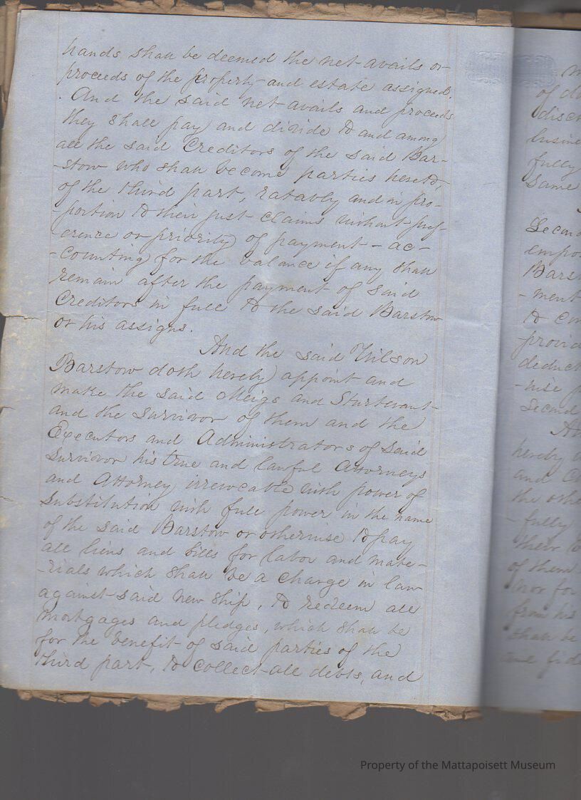 Indenture agreement in three parts between Wilson Barstow and first the Commonwealth of Massachusetts, second Loring Meigs and Samuel Sturtevant and third, creditors of Wilson Barstow, in order to pay debts. Transfer of property. Four and a half pages ofCollection
