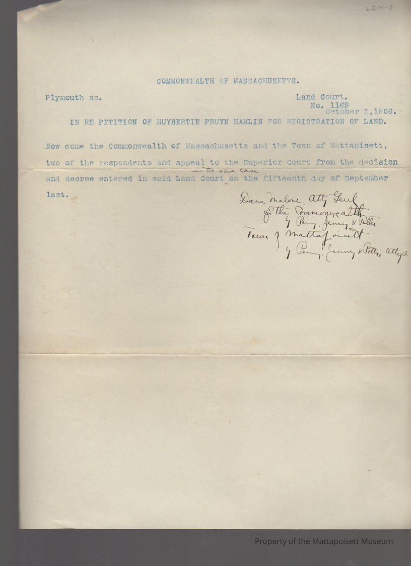 Petition of Huybertie Pruyn Hamlin for Registration of Land. Land Court, Plymouth.Collection