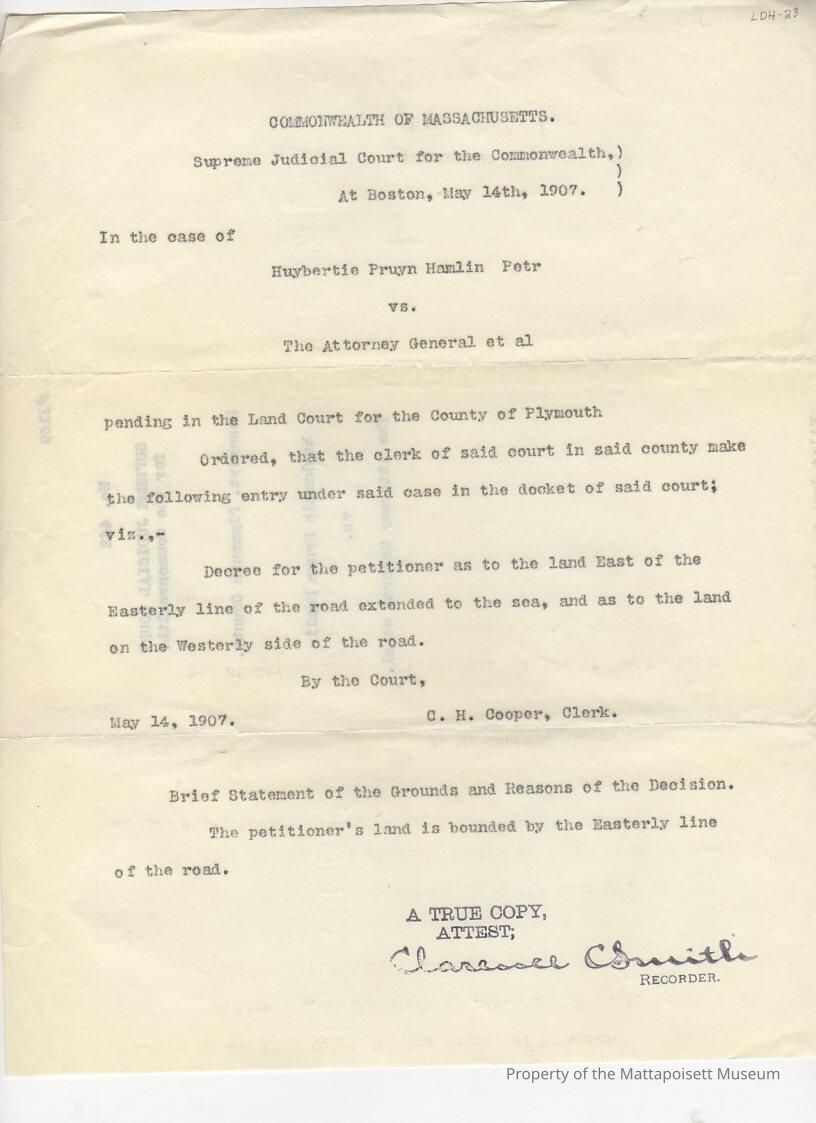 In the case of Huybertie Pruyn Hamlin vs. The Attorney General et. al pending in the Land Court for the county of Plymouth requesting specific terms be added.Collection