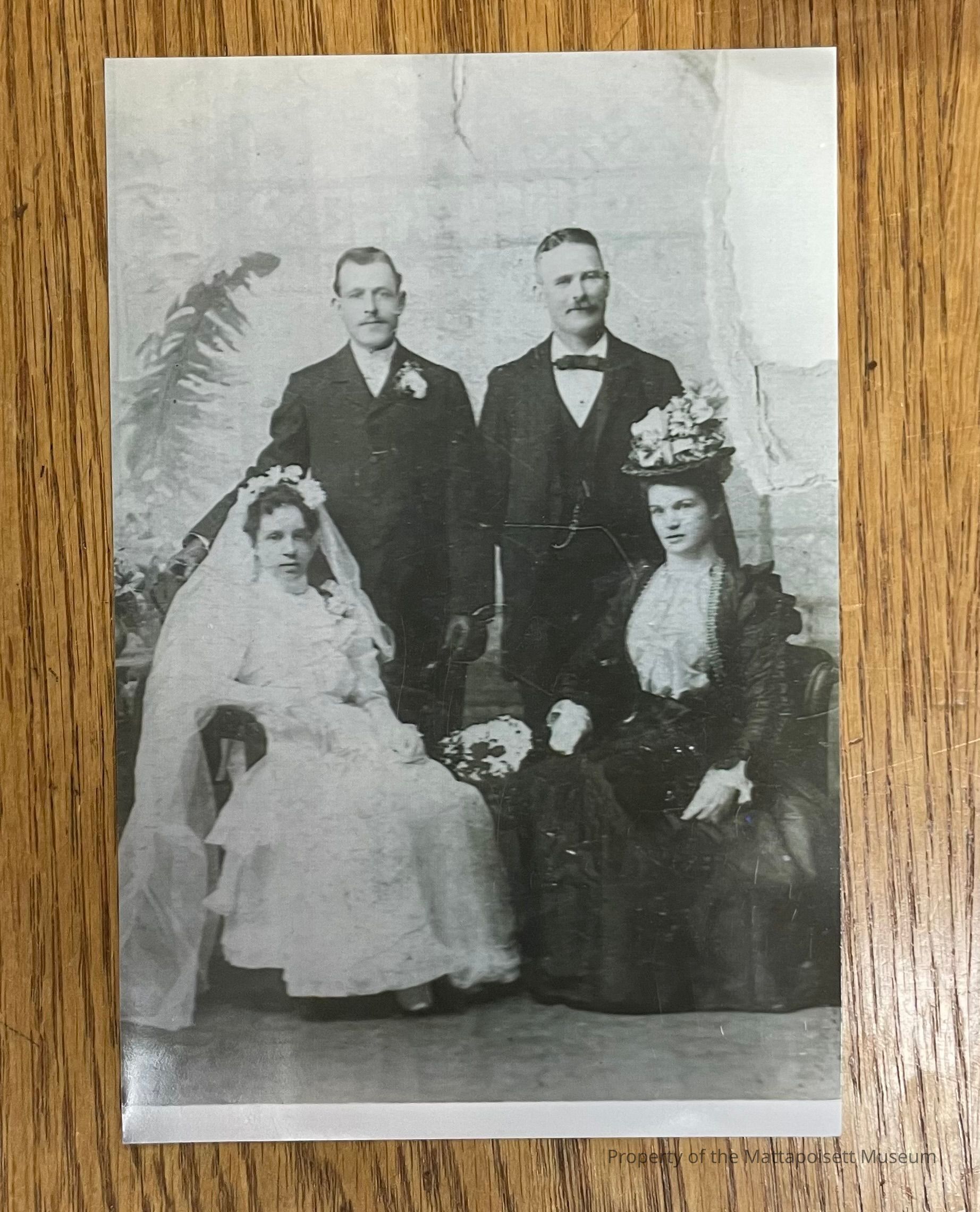 Wedding photo of John and Amelia Sylvia with Dennis and Ella Mahoney.Collection