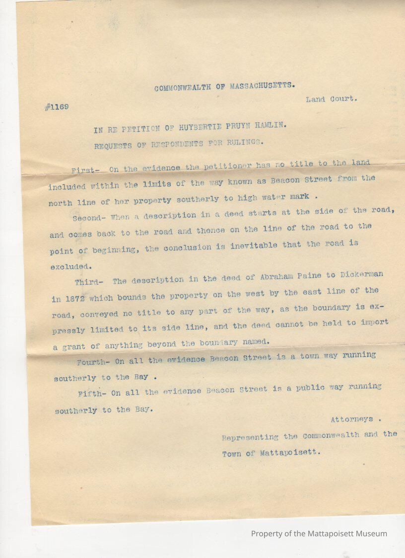Requests of respondents for Ruling in petition of Huybertie Pruyn Hamlin vs. Attorney General et. al.Collection