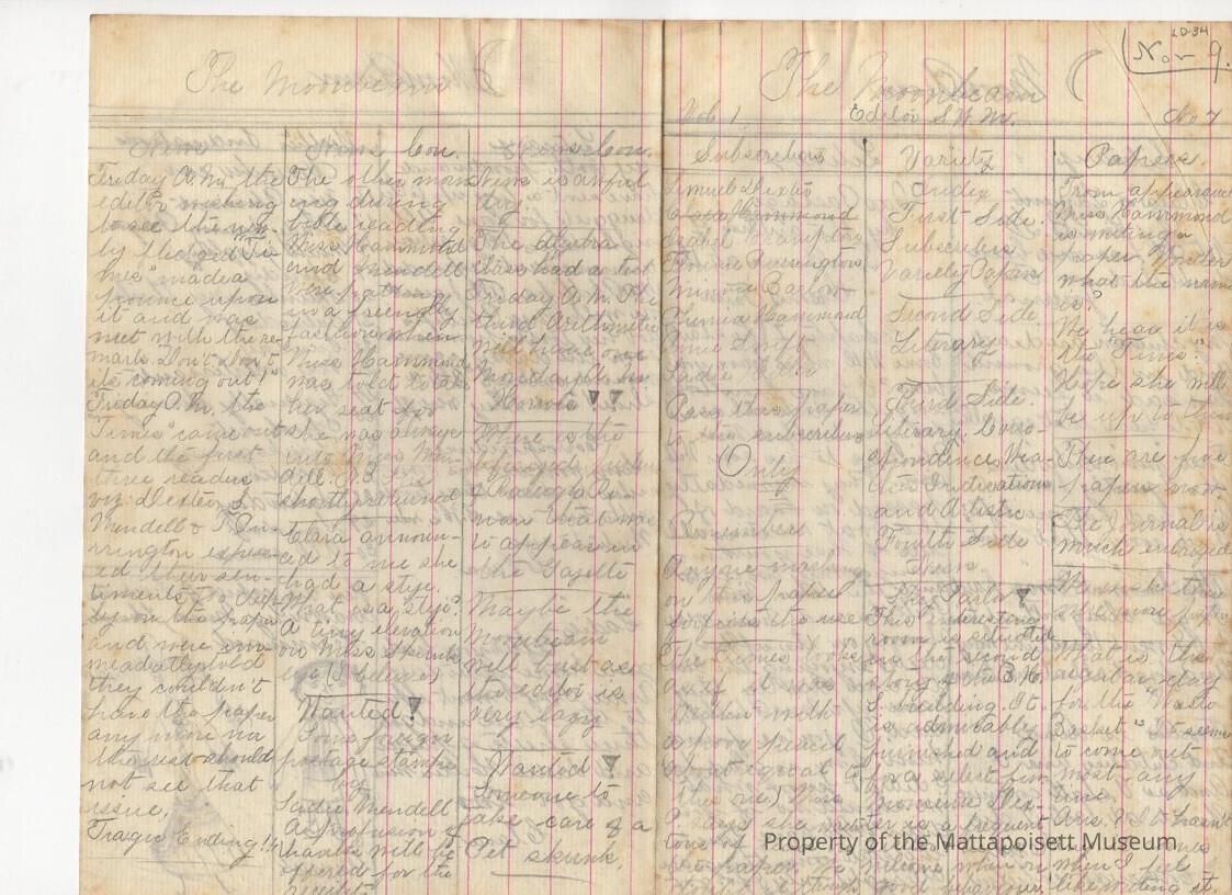 "The Moonbeam" Lemuel LeBaron Dexter's high school hand-written newsletter. Several editions. Sadie W. Mendell, editor.Collection