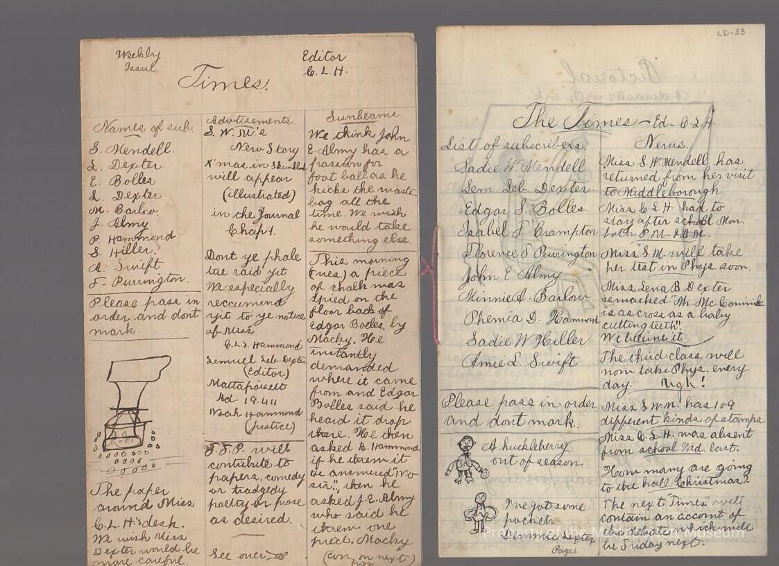 The Weekly Times, handwritten newsletter. Undated. Three editions.Collection