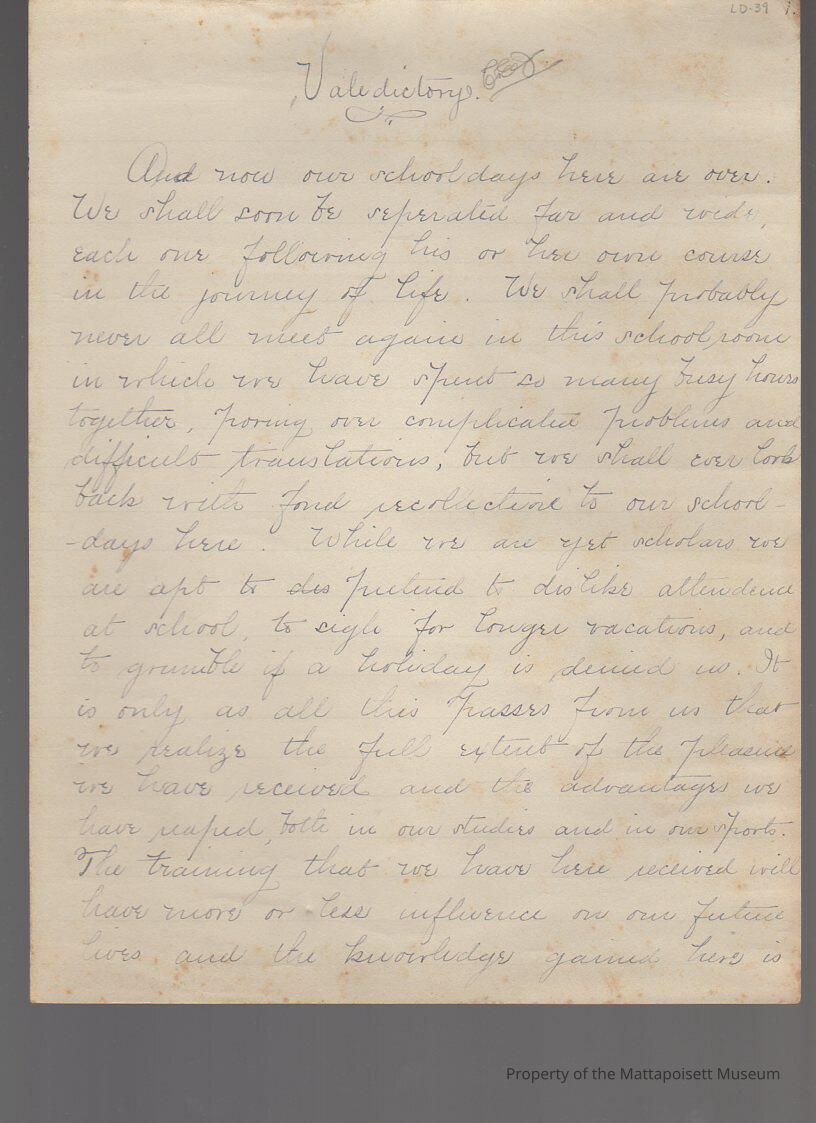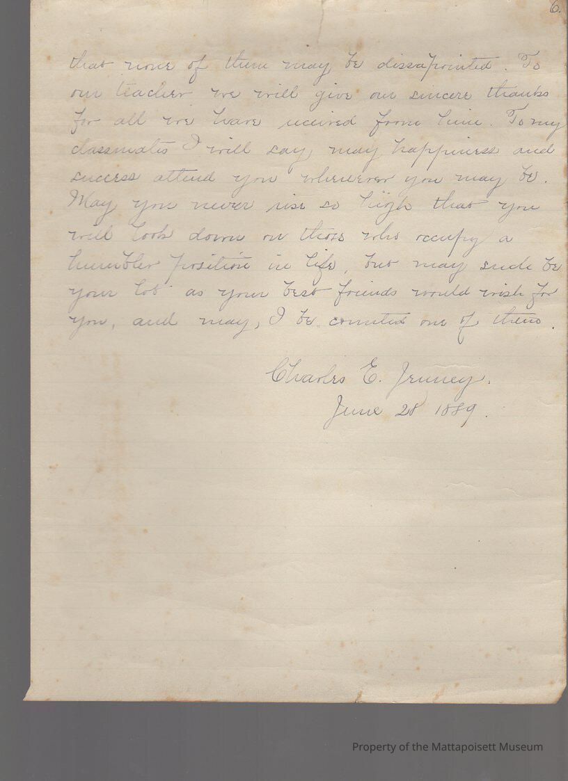 Valedictorian speech, June 28, 1889. Charles E. Jenney.Collection