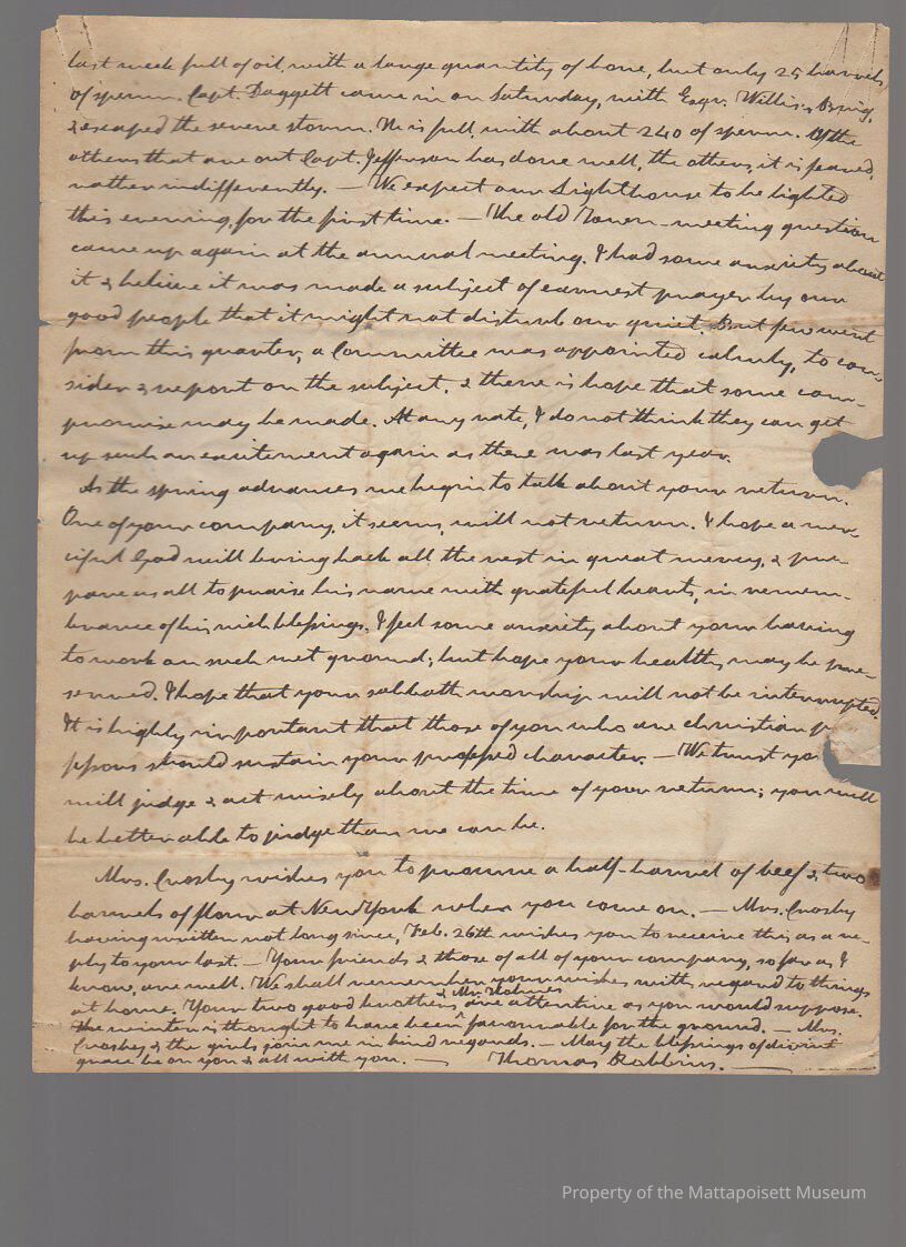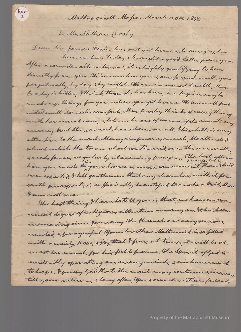 Letter to Nathan Crosby from Thomas Robbins while at Dutch Settlement, Attakapas, Louisiana.Collection