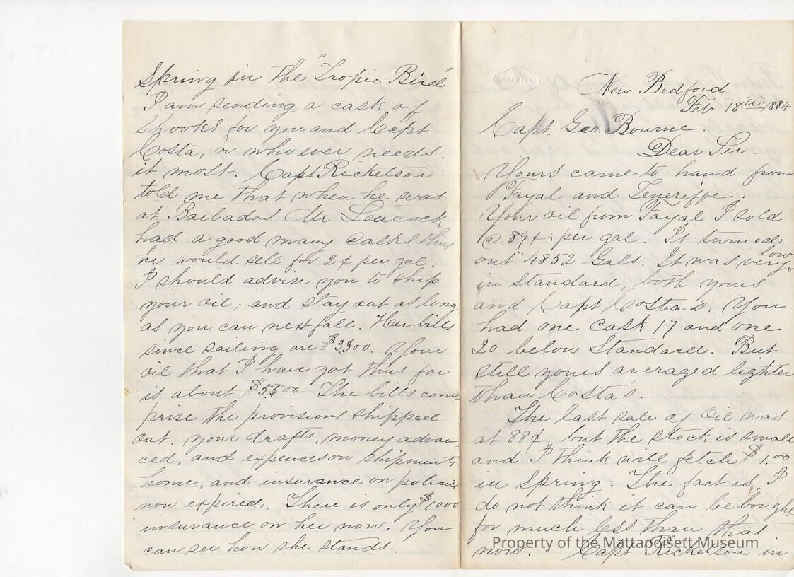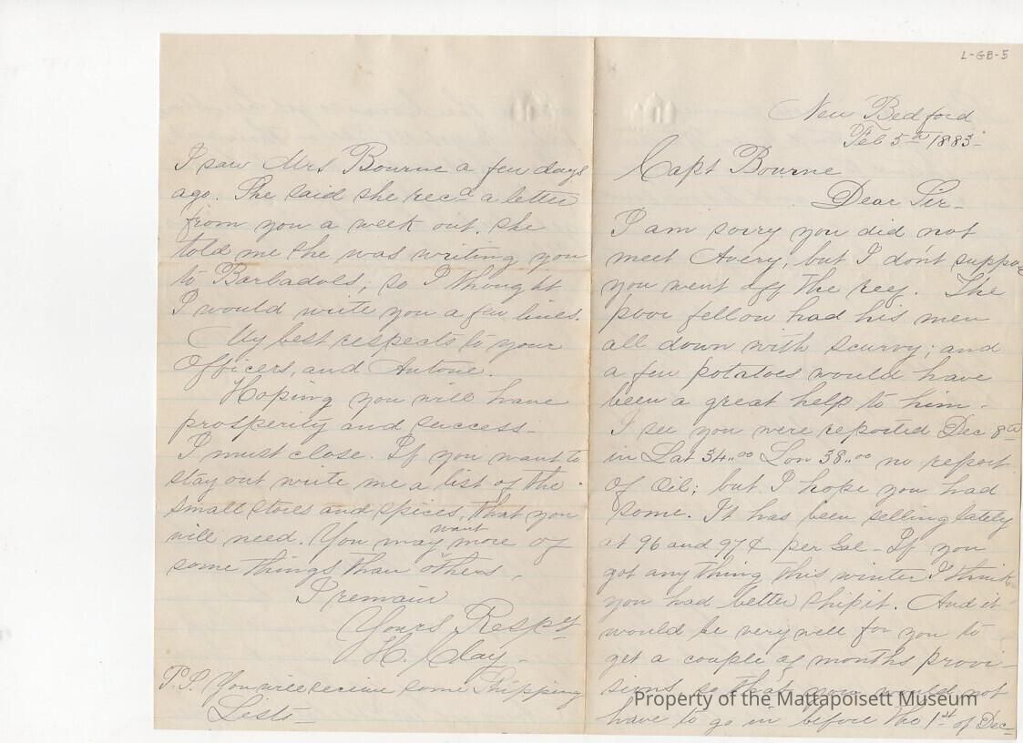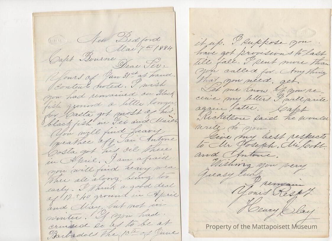 Letter to Capt. [George] Bourne from Henry Clay. Three letters. Feb. 5, 1883, Feb. 18, 1884, May 7, 1884.Collection