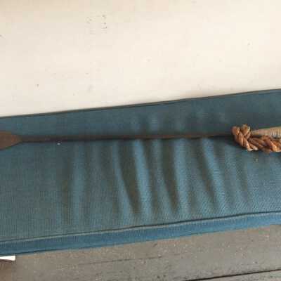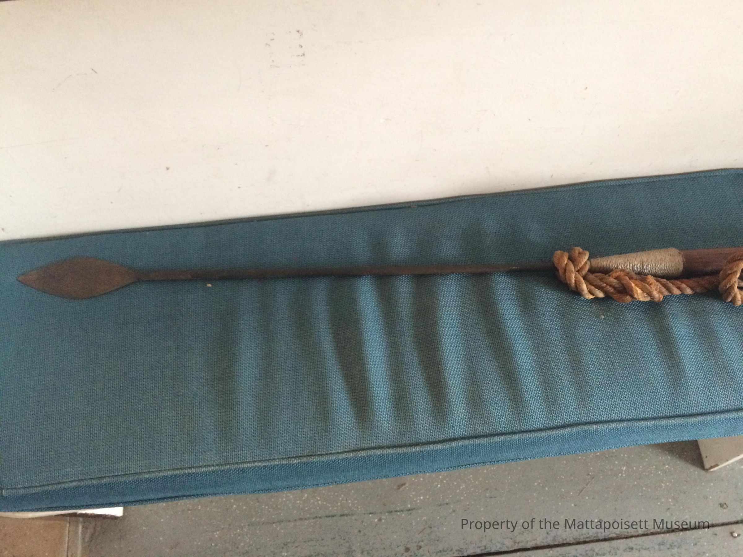 Spear head whaling harpoon, with wooden handle and rope.Acquisition