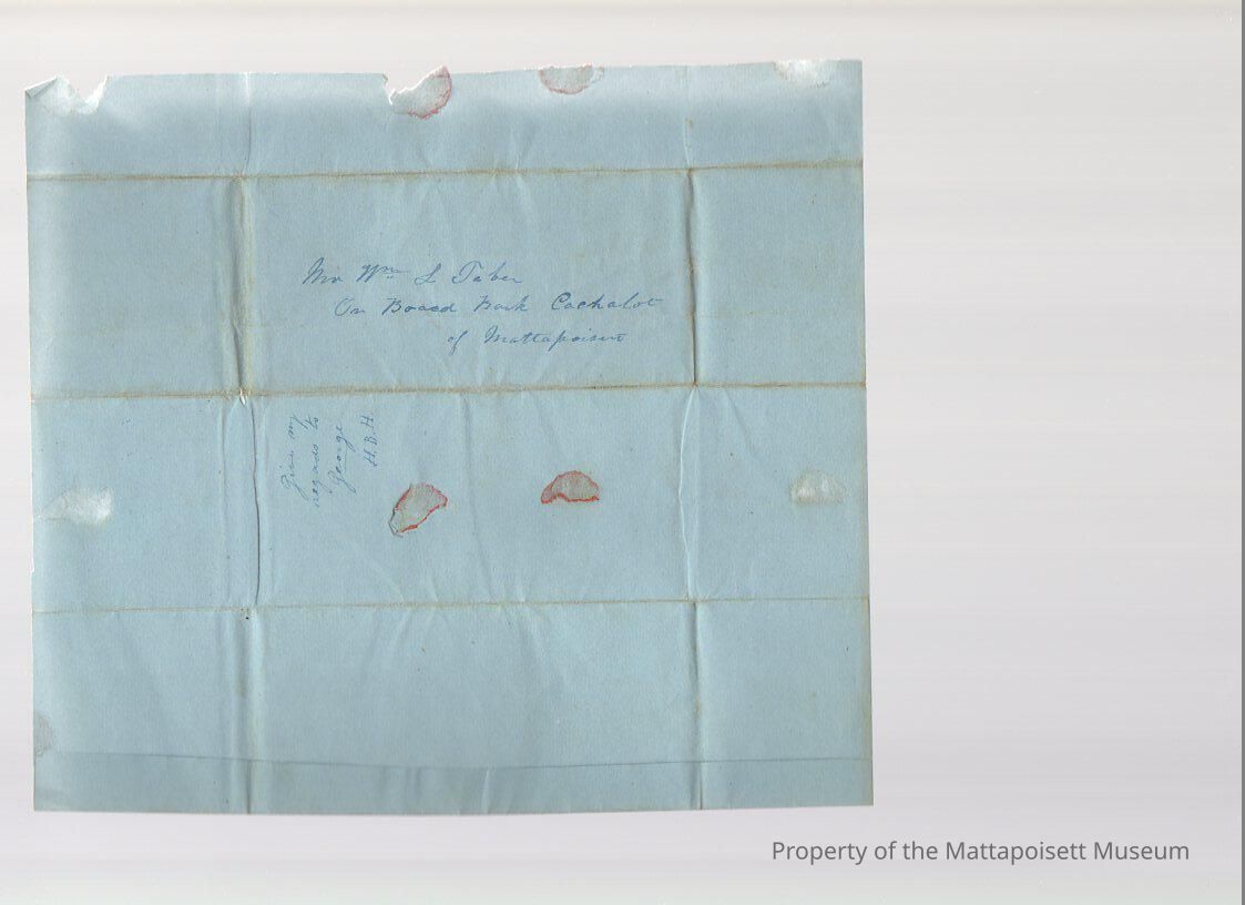Address on letter to Mr. William L. Taber on board the Bark Cachalot of Mattapoisett from H. B. H.Collection