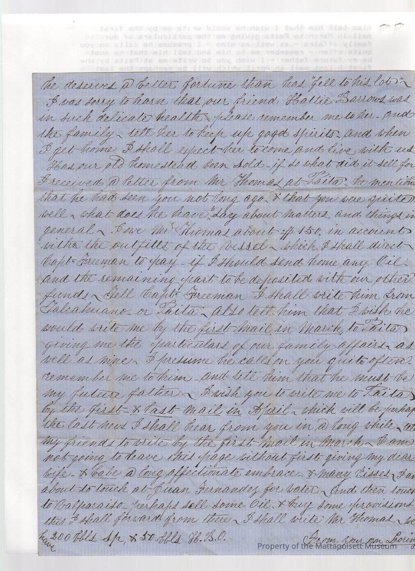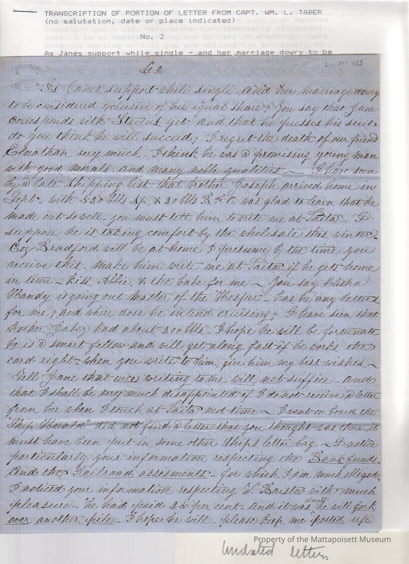 Portion of a letter from Capt. William L. Taber. Transcription.Collection