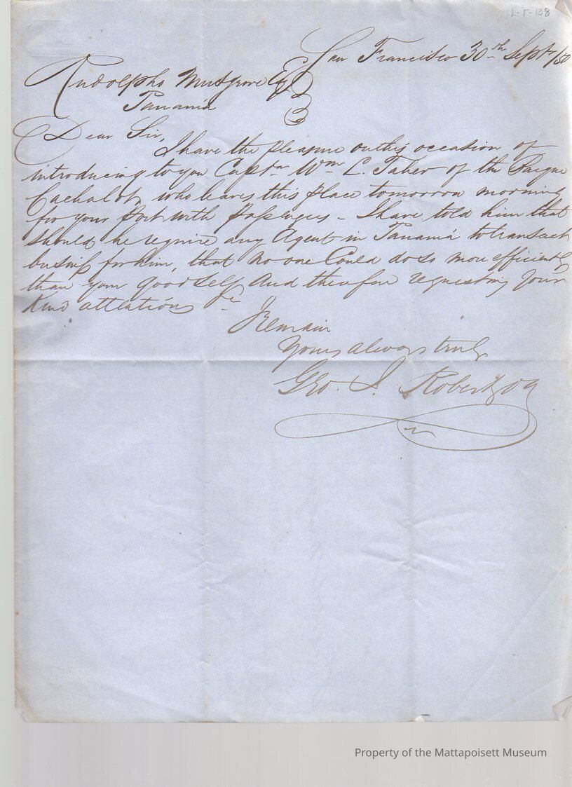 Letter to Randolpho Mudgrove, Esq., Panama from Gro. S. Robinson in San Francisco.Collection