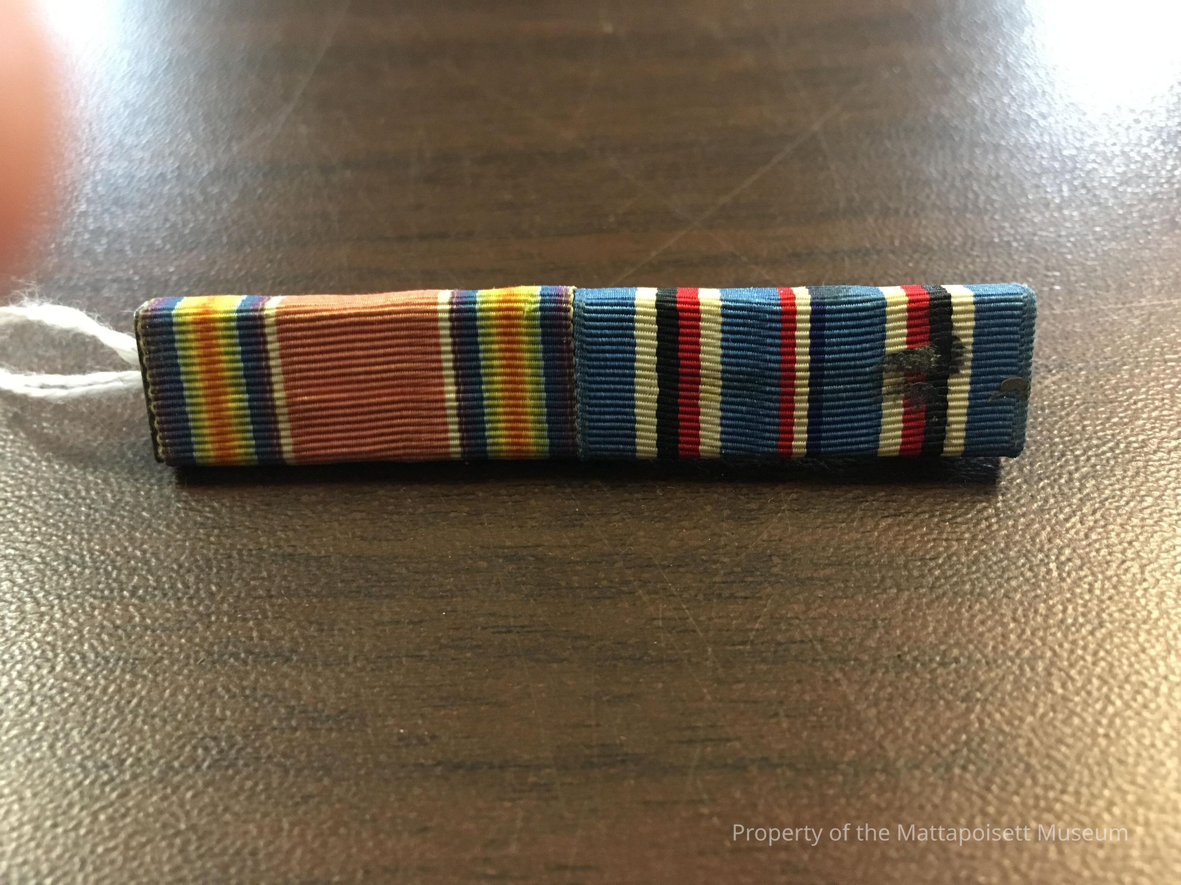 US Navy pin with WWII Victory and American Campaign ribbons. Belonged to Evelyn Pursley.Collection