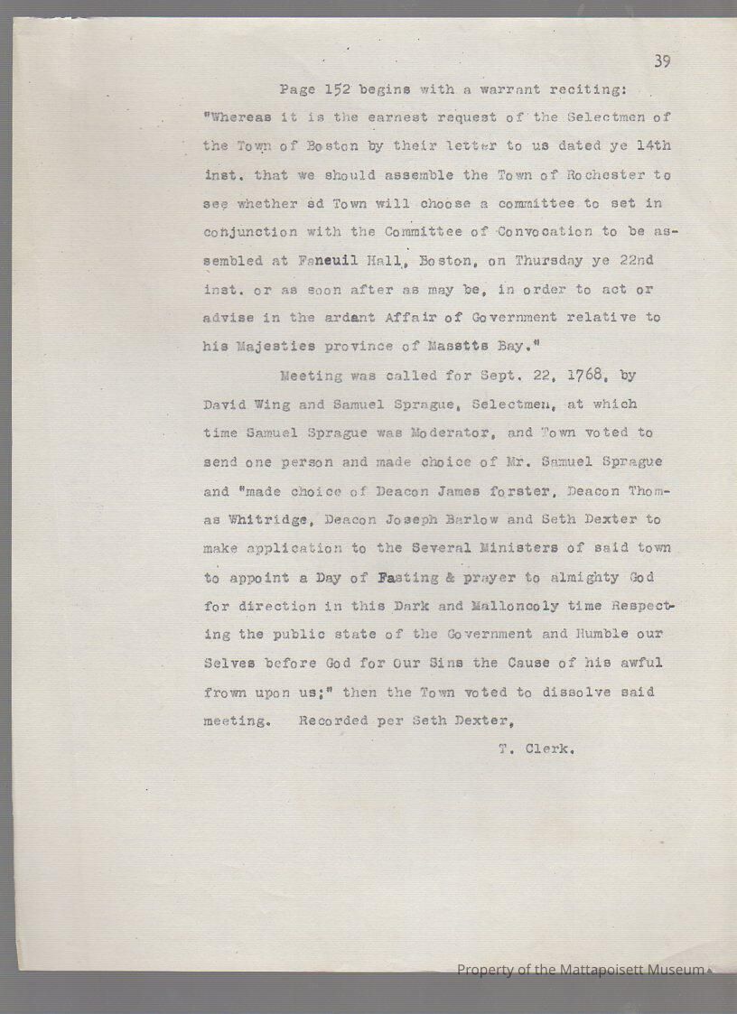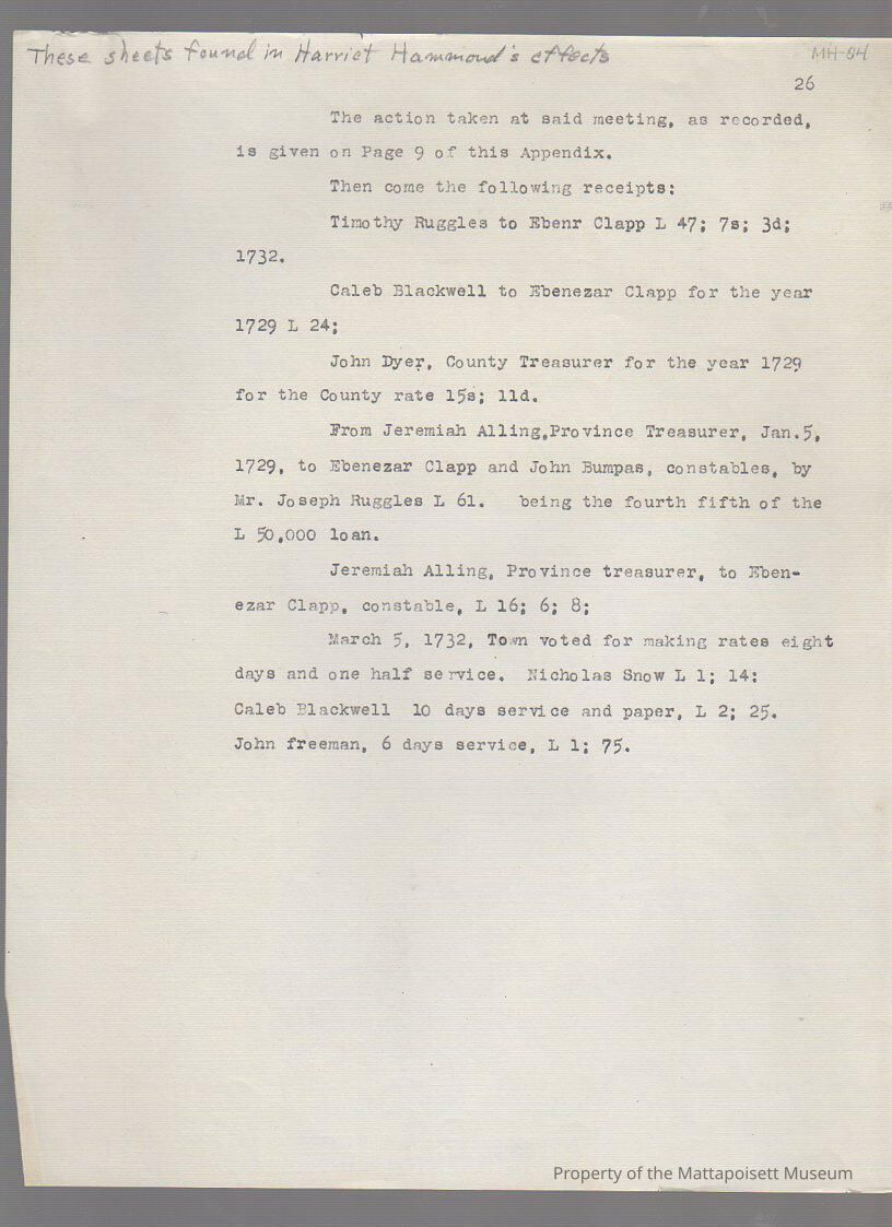 Town meeting sheets found in Harriet Hammonds effects.Collection