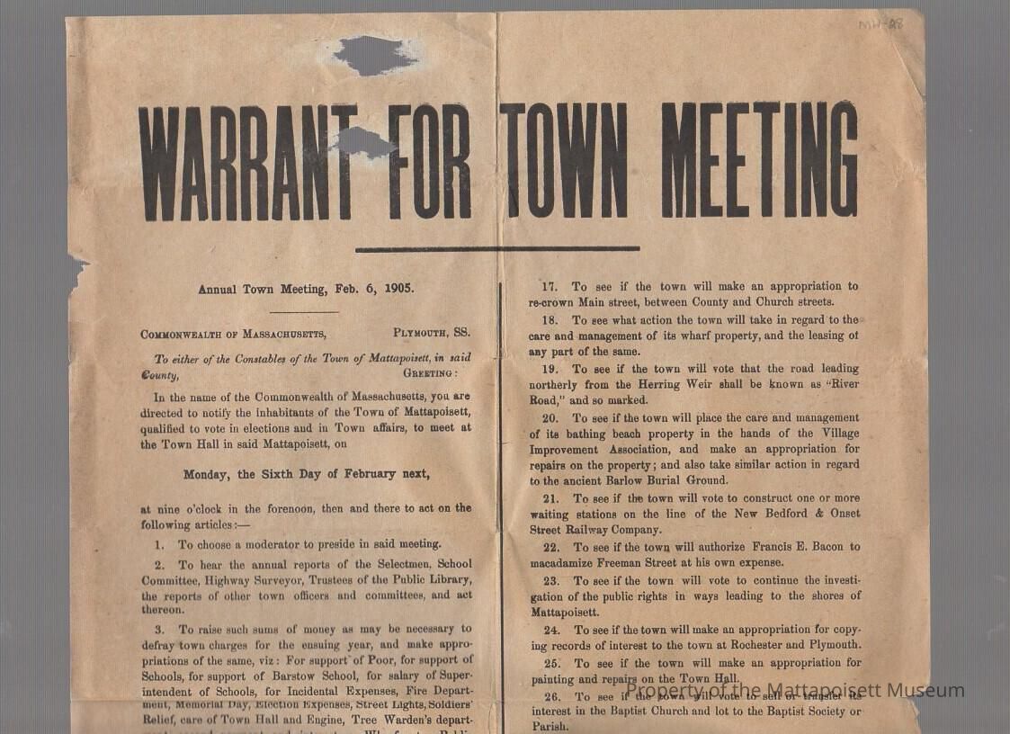 Warrant for Town Meeting, Annual Town Meeting, February 6, 1905.Collection