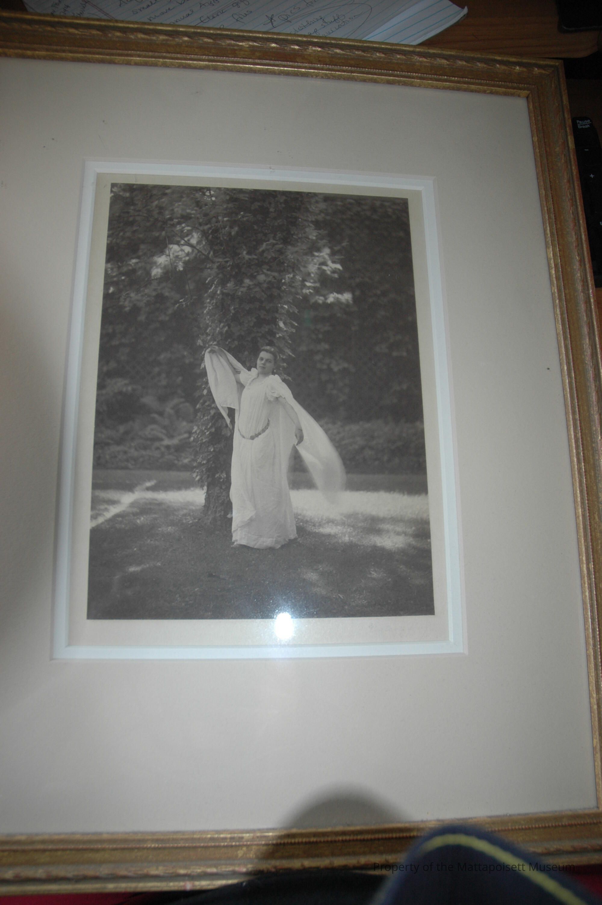 Matted and framed black and white photograph of Mrs. Charles S. Hamlin depicting a young Mrs. Hamlin in costume for a pastoral theatrical performance at the home of one of the family's friends in Albany, NY in the early 20th century.Collection