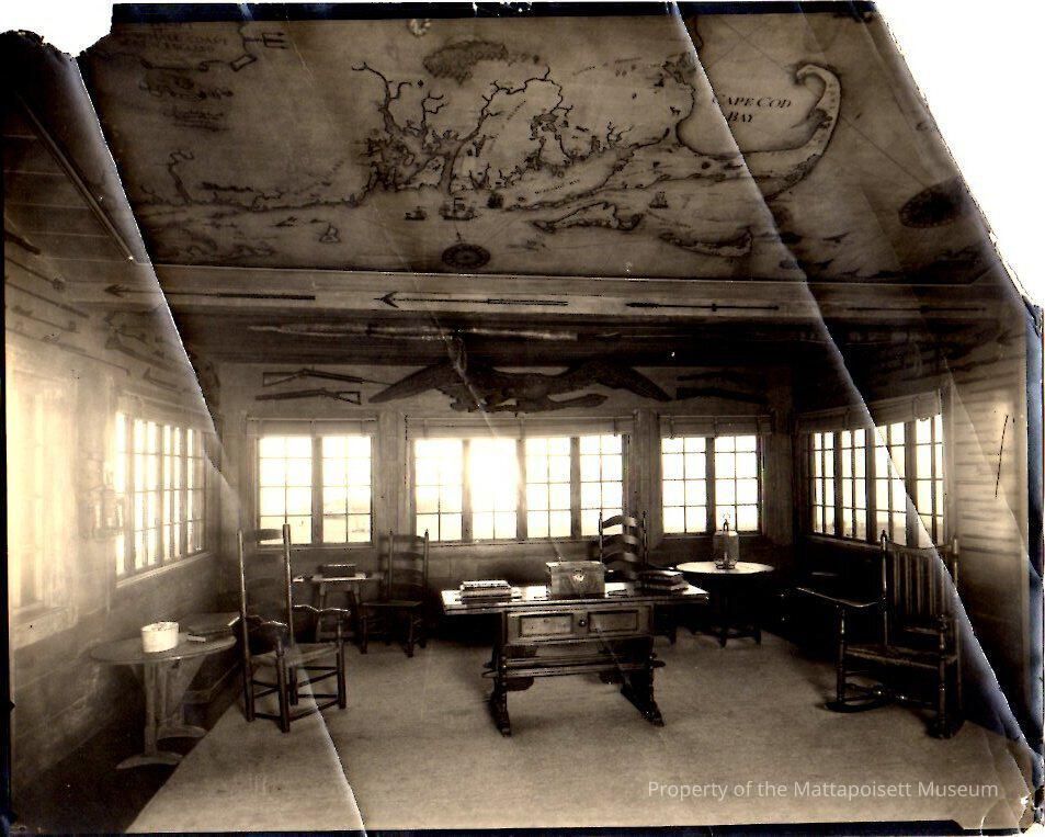 Harpoon room at Hinsdale House. Clifford W. Ashley mural on ceiling.Acquisition