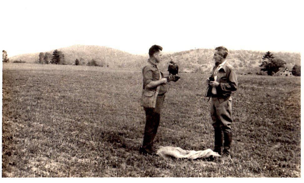 Photograph of Mr. Hinsdale and possibly a Field (on right) with a hawk.Acquisition