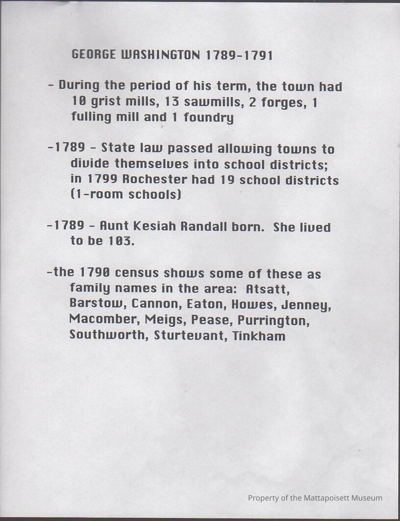 Timeline of Mattapoisett during president terms. Continues beyond first page.Collection
