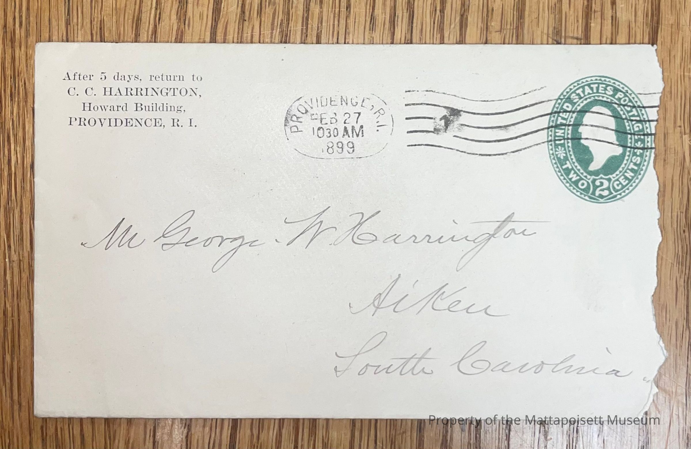 Part of the 2022.4 George W. Harrington collection. Harrington is a published author who spent his summers writing in Mattapoisett. 2022.4.02 is the Personal Correspondence series.Collection
