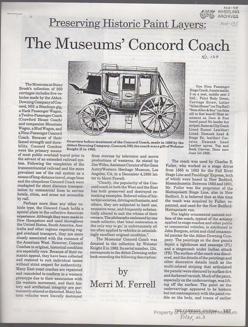 The Carriage Journal, Vol. 34, No. 3 "Preserving Historic Paint Layers: The Museums' Concord Coach"Collection