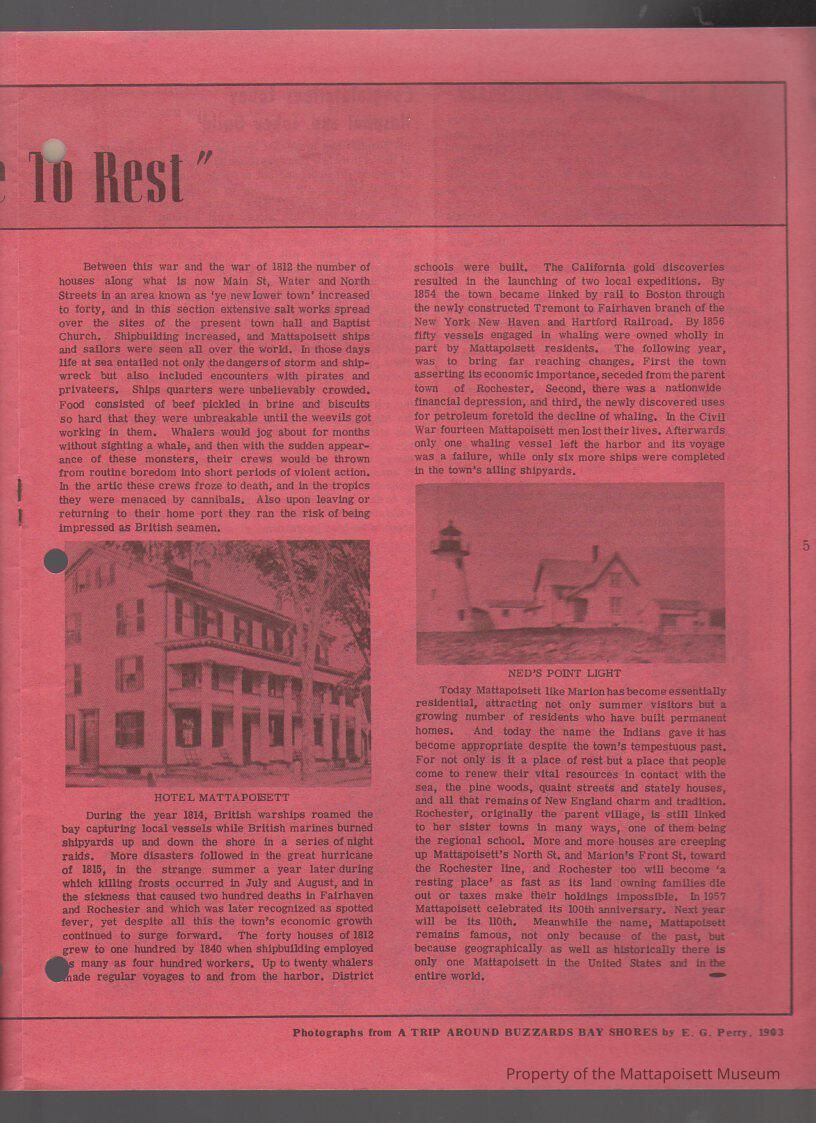The Sippican Sentinel Overflow, Vol. 1, No. 10. Article "A Place to Rest".Collection