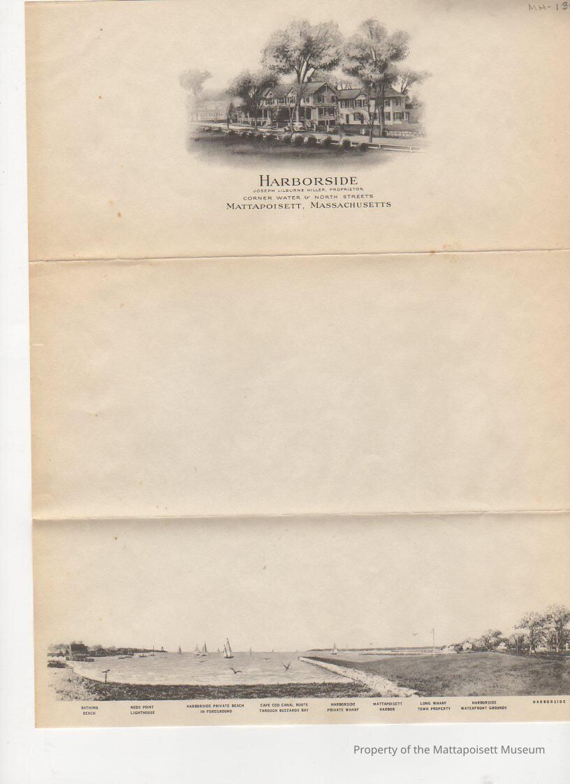 Letterhead for Harborside, Joseph Lilburne Hiller, Proprietor, corner Water & North Streets, Mattapoisett Massachusetts.Collection