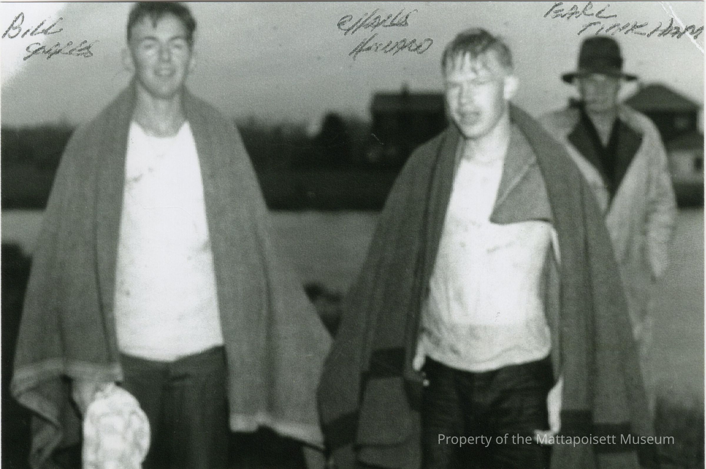 Bill Soares and Charles Howard after their first place finish in the Rochester River Race, 1948. Earl Tinkham in back.Acquisition