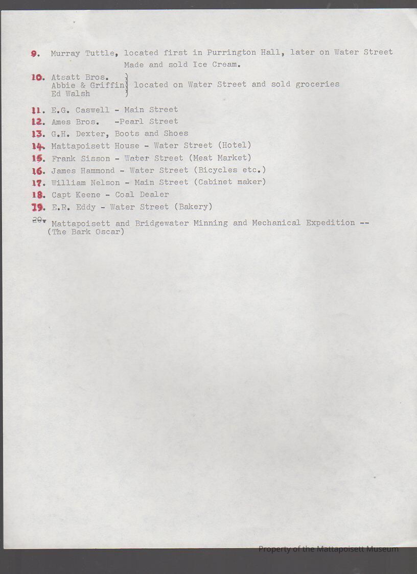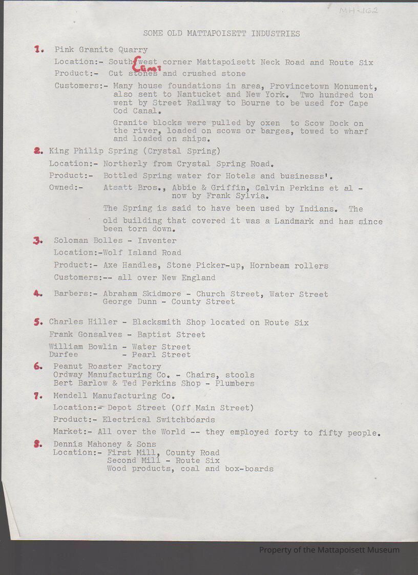 Some old Mattapoisett industries, with maps indicated locations.Collection