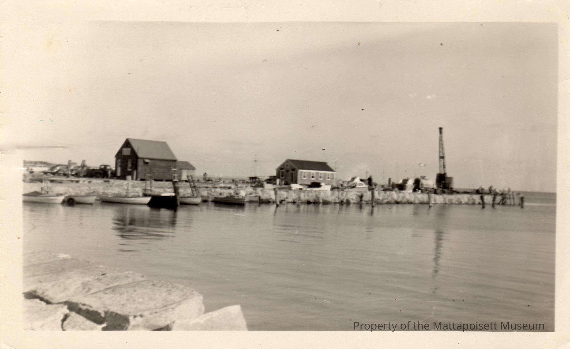B&W photo showing Mattapoisett wharves. Back states: "No need to tell you what this is".Acquisition