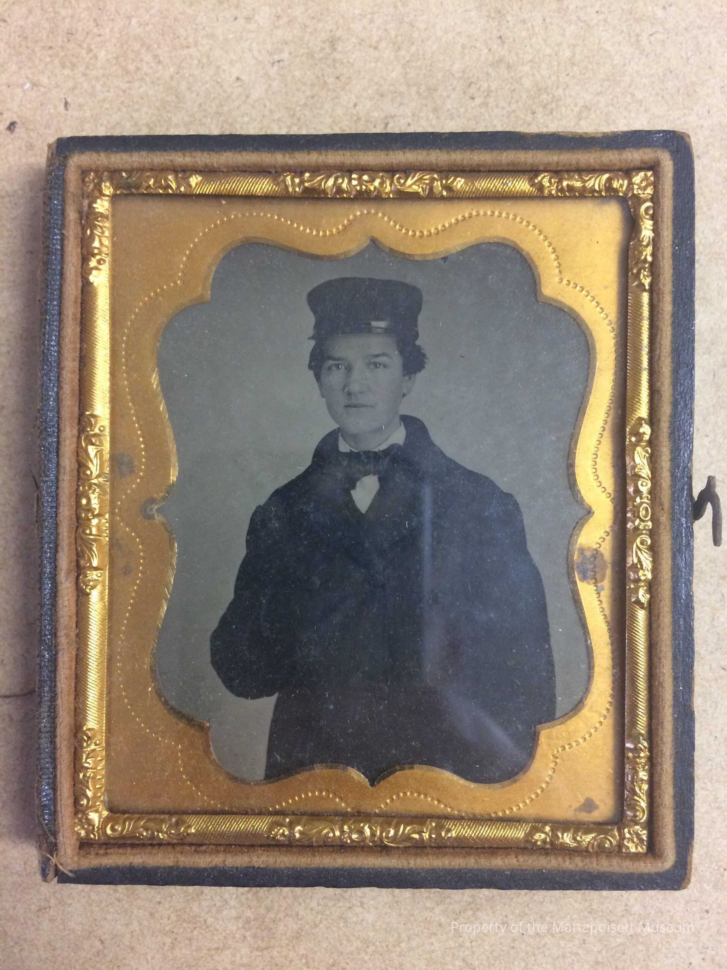 Daguerreotype of a young man. Missing front lid of case. Label pinned to lining identifies photo as Charles S. Garlick.
