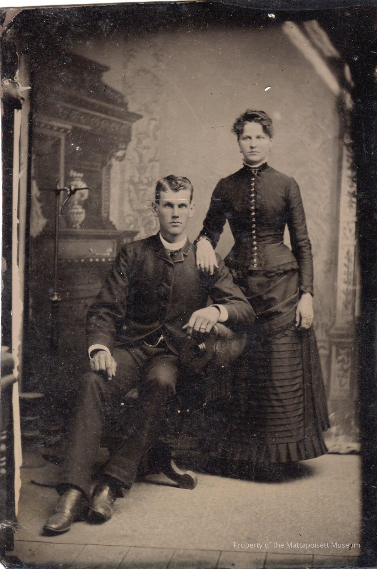 Tintype portrait of a man and a woman. Unknown subjects, but same as 2017.7.32.