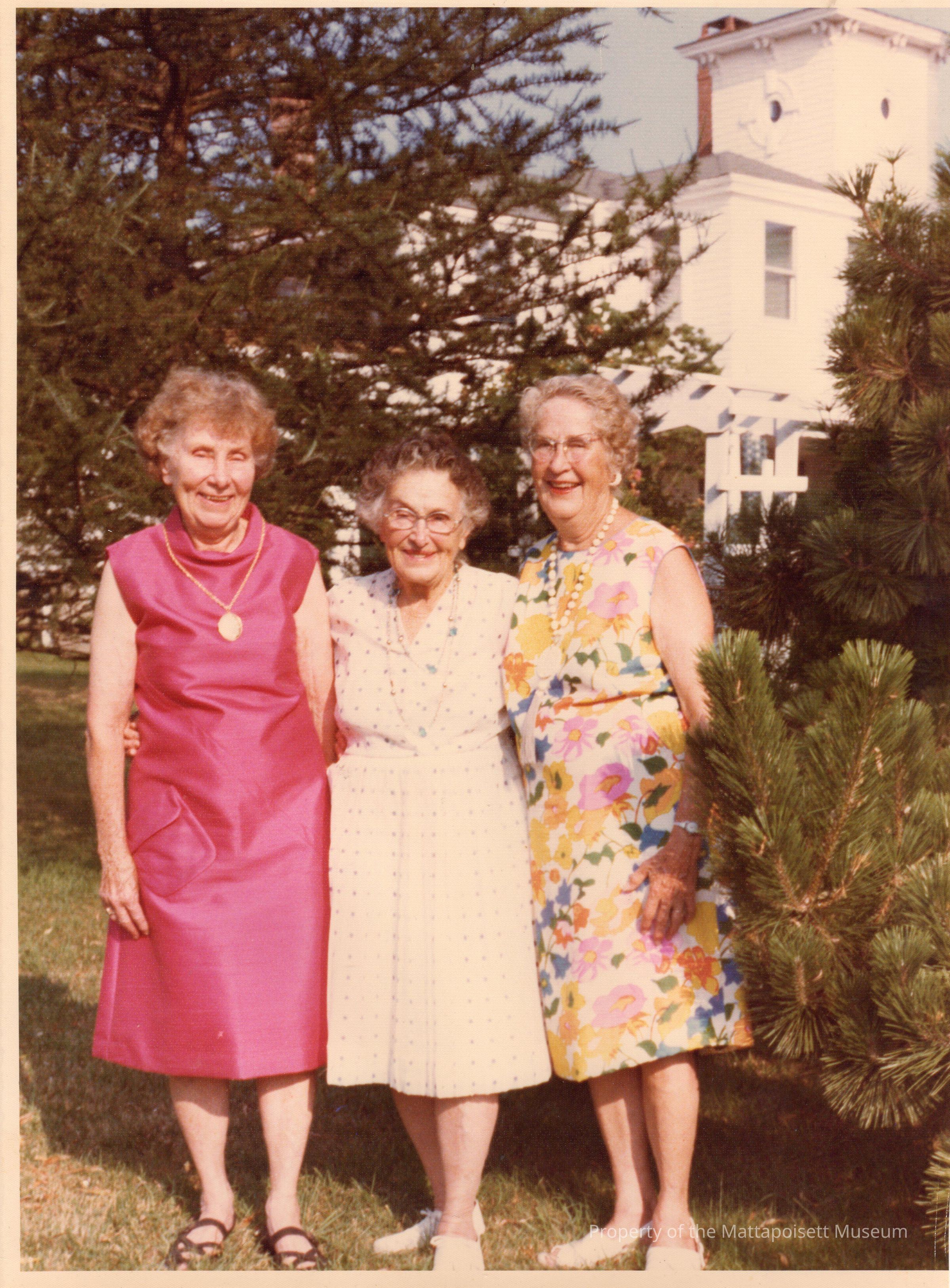 Color photograph of three unidentified women. House in background is likely 2 Main St. Photo was printed Sep. 1977.Acquisition