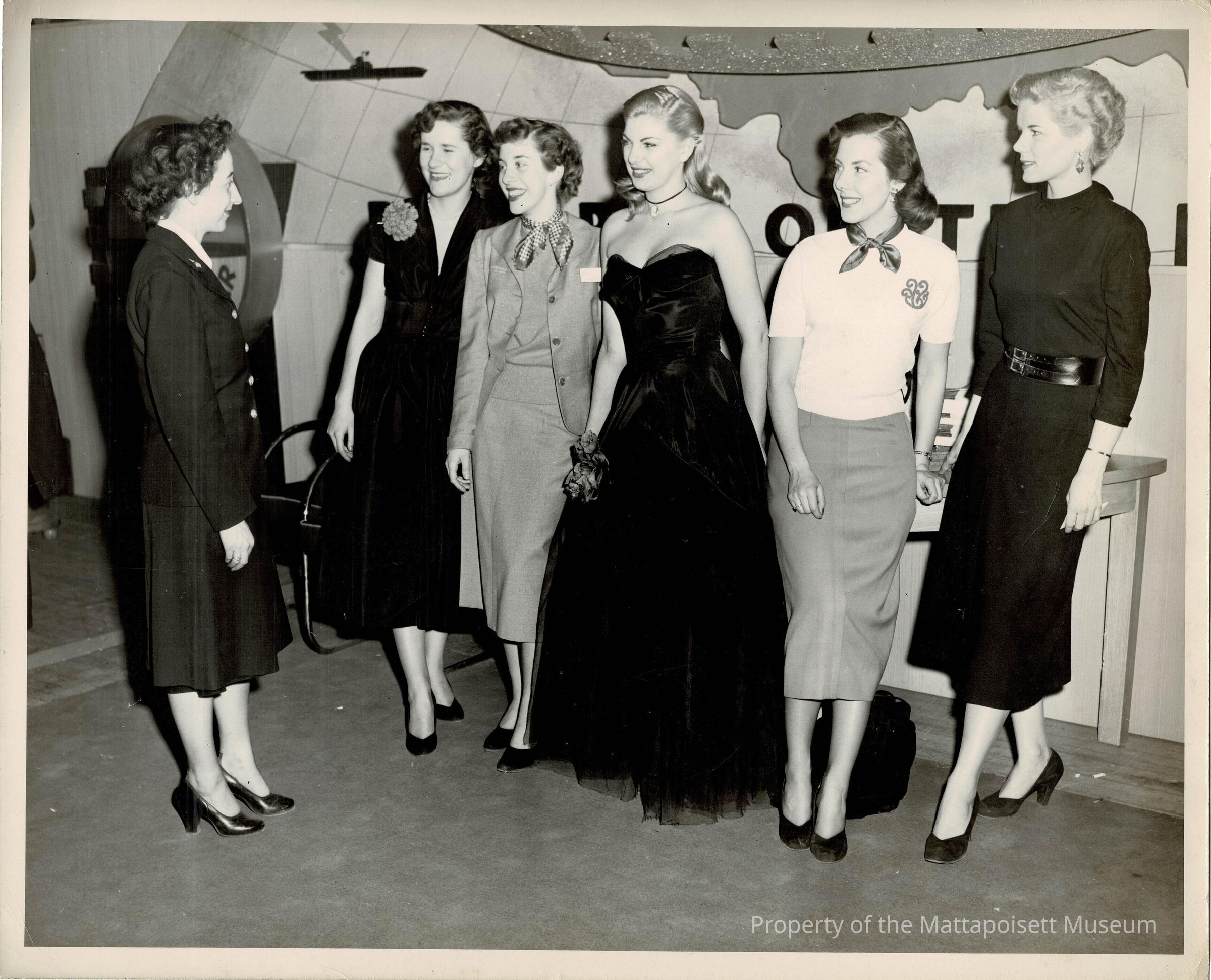 One of a series of B&W photos of Evelyn Pursley (nee Silveira) and various others at what appears to be an event at the US Navy Underwater Sound Laboratory at Fort Trumbull, New London.Acquisition