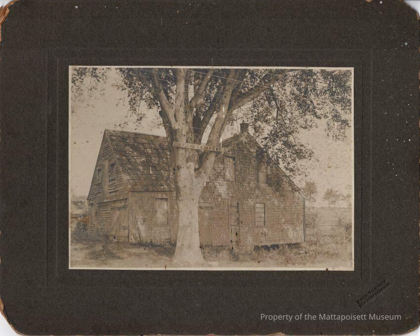 B&W photograph of the Dexter Mill and Dexter Elm. The Dexter Mill was located along Rt. 6, just east of Mendell Road. It was first owned by Elisha Dexter and the large elm tree in front was at one time used to post town notices. The tree was cut down in 1966.Collection