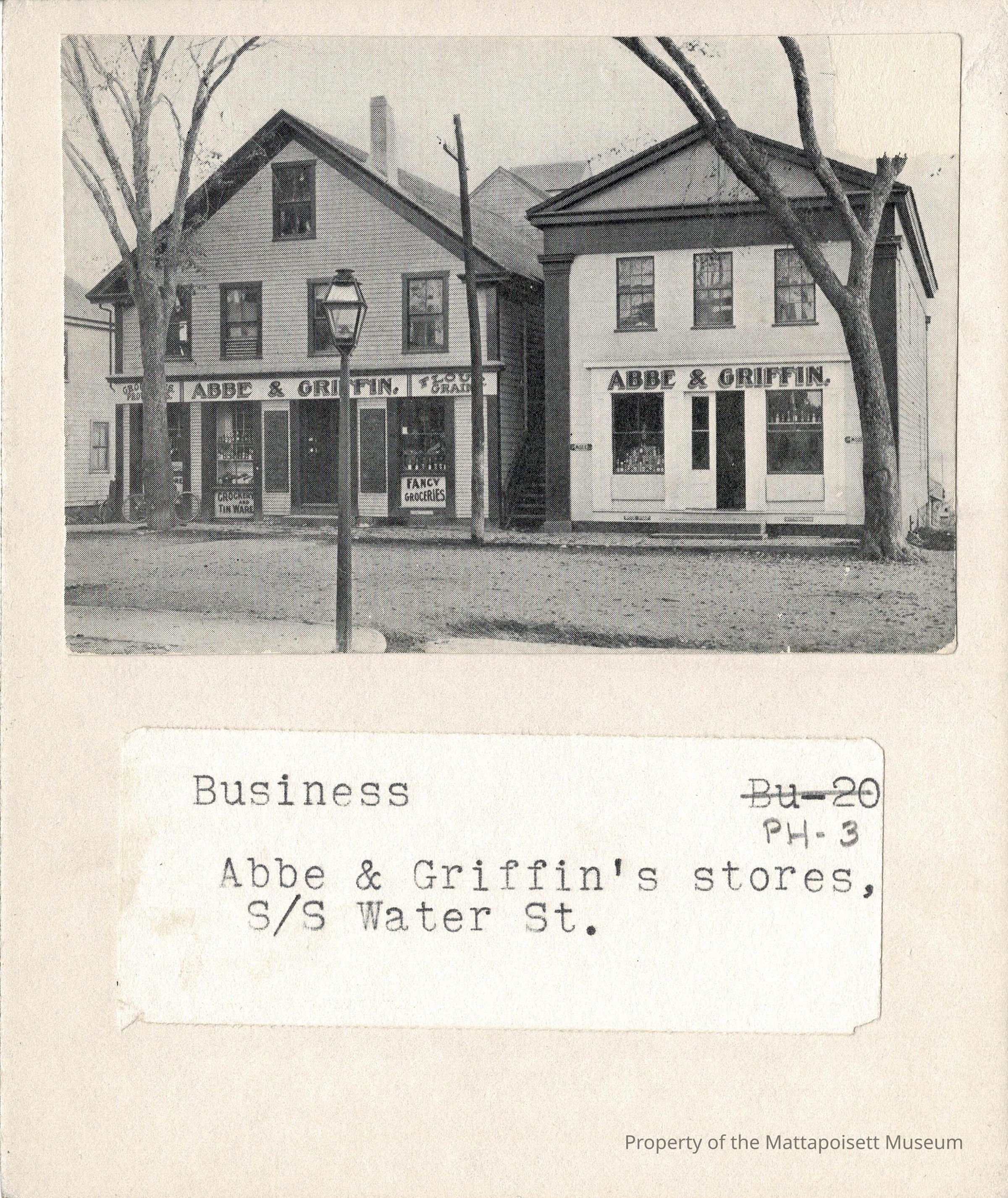 B&W photograph of the Abbe & Griffin's stores on Water Street.Collection