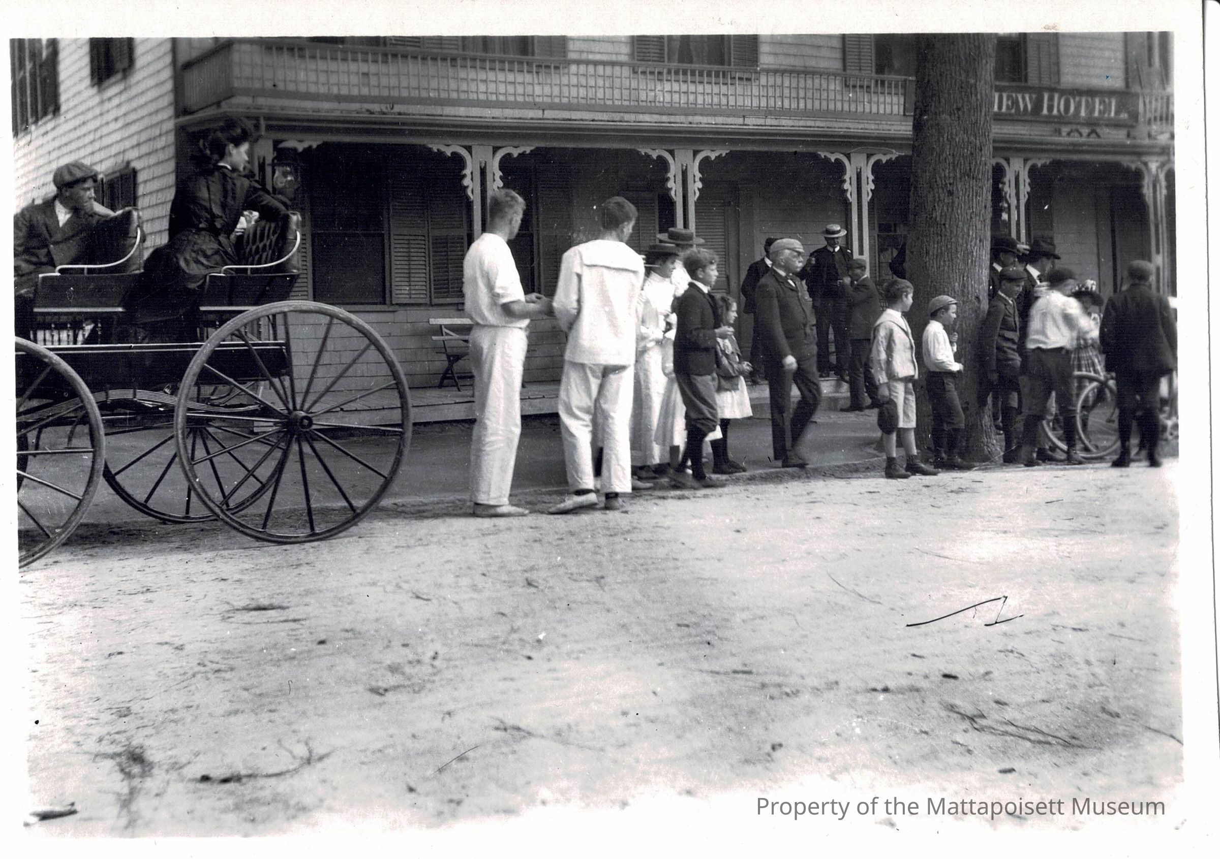 B&W photograph of street scene outside the Bay View Hotel on Water Street.Collection
