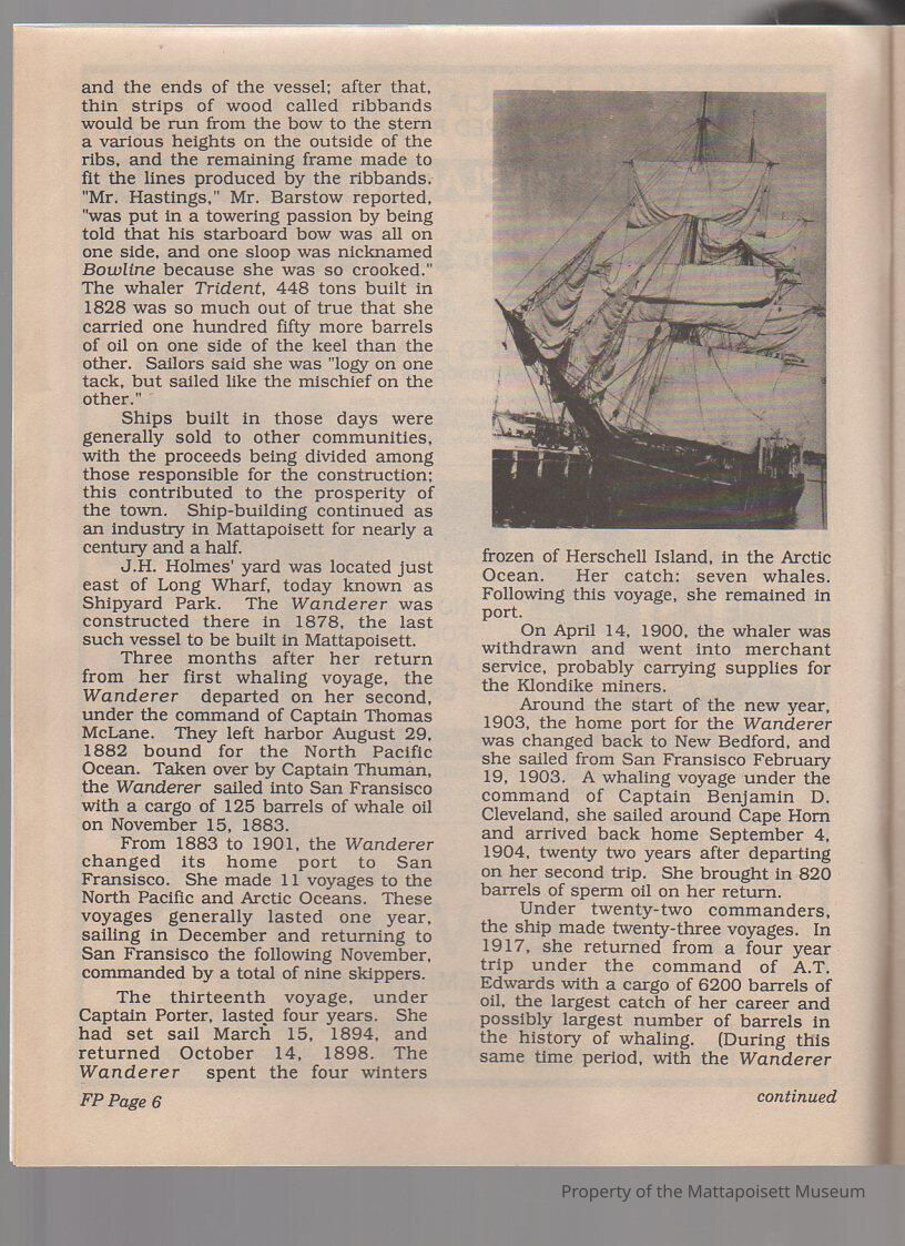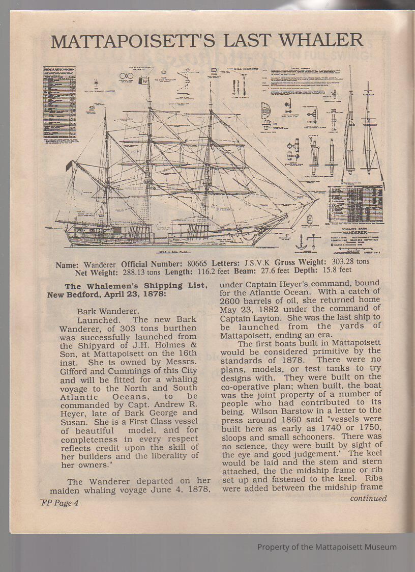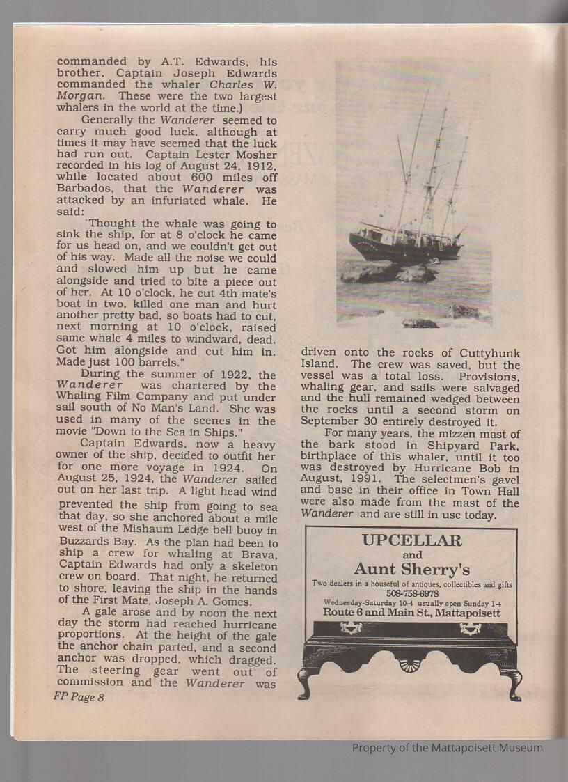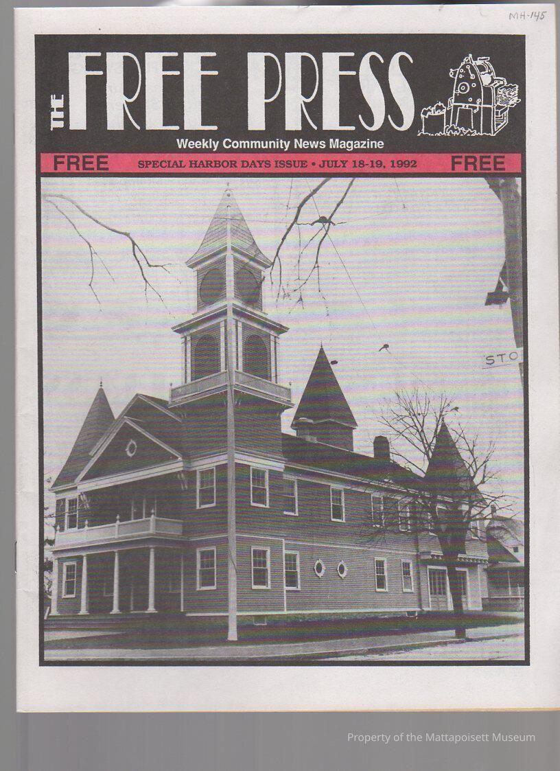 The Free Press, Special Harbor Days Issue - July 18-19, 1992. Mattapoisett Town Hall on front, article "Mattapoisett's Last Whaler" about the Bark Wanderer.Collection