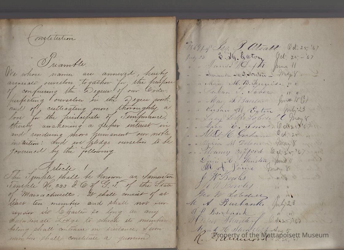 Constitution, signed by Atsatt, Eaton, Taber, Barlow, Snow, Delano, Gifford, Winston, Bowles, etc.Collection