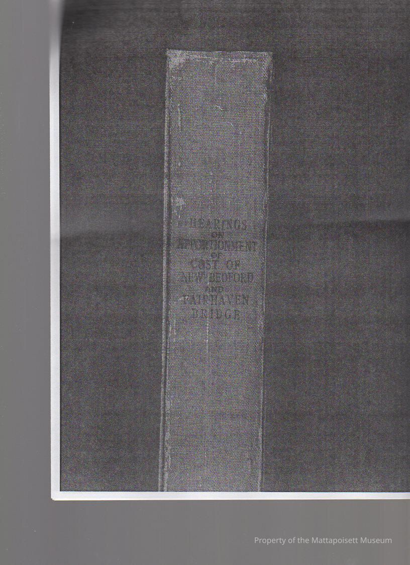 Photocopy of book "Hearings of Apportionment of Cost of New Bedford and Fairhaven Bridge.Collection