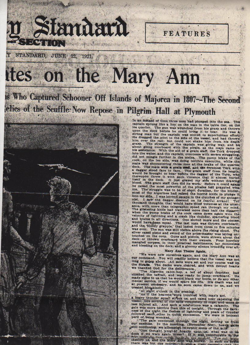 Photocopy of Sunday Standard, June 12, 1921, "The Fight With Pirates on the Mary Ann."Collection