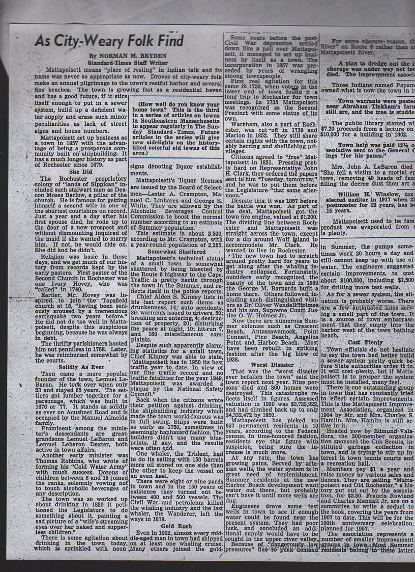 Standard-Times photocopy of article "As City-Weary Folk Find"Collection