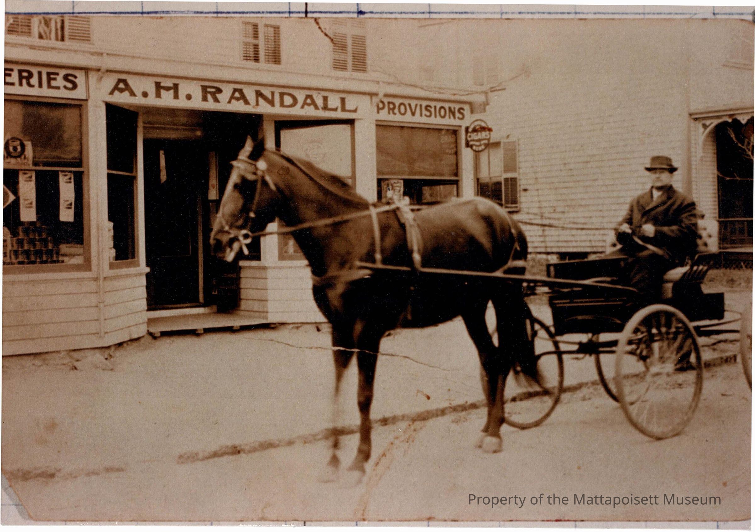 B&W photograph of Arthur Herbert Randall in front of his store on Water Street.Collection