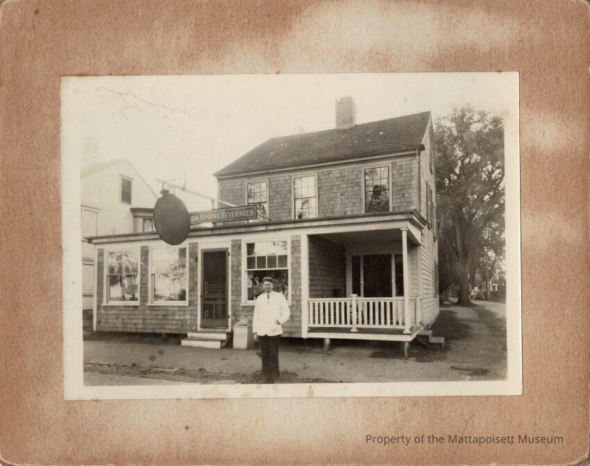 B&W photograph of Murray R. Tuttle in front of his new store, "The Wanderer", on the corner of Water and Barstow Streets, c. 1926.Collection