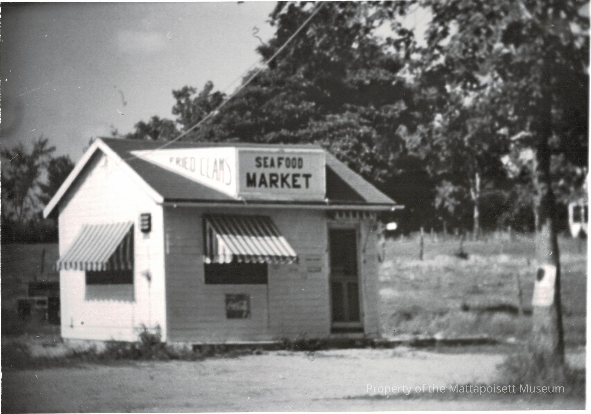 B&W photograph of a seafood market on Rt. 6, date unknown.