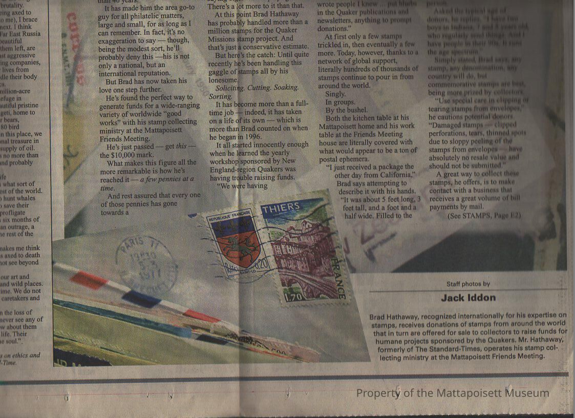 Standard-Times article "Stamp Act: Brad Hathaway's expertise helps Quakers raise funds for charitable causes"Collection