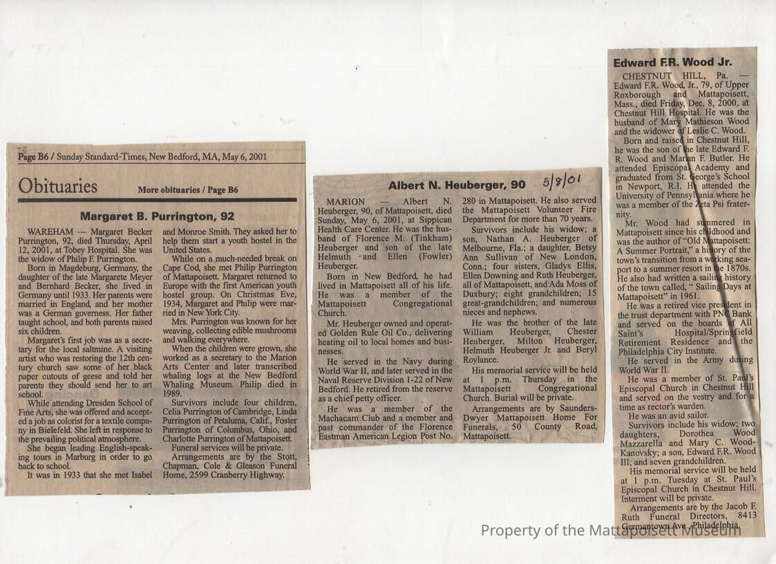 Obituaries; Margaret B. Purrington, 92; Albert N. Heuberger, 90; Edward F. R. Wood, Jr. 79.Collection